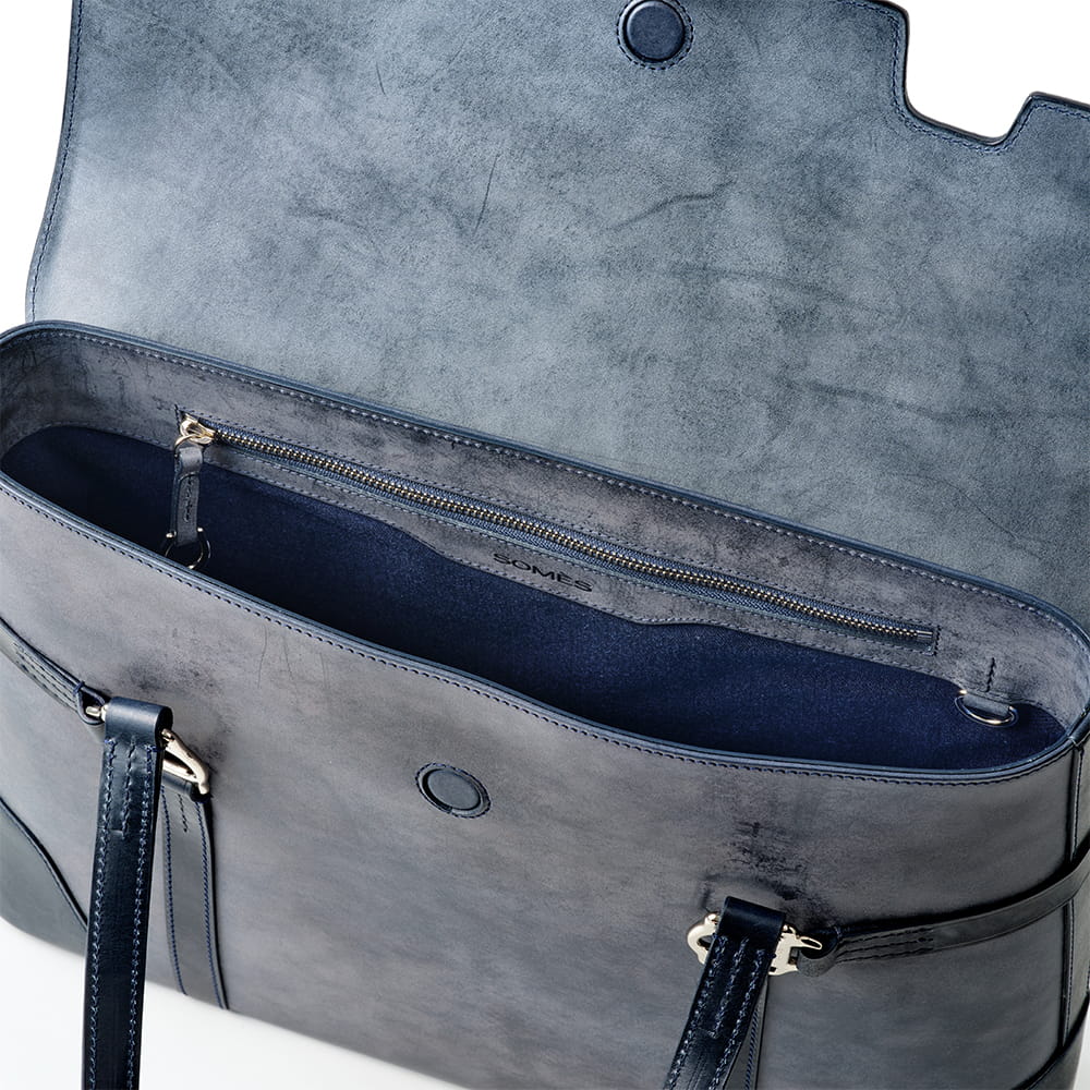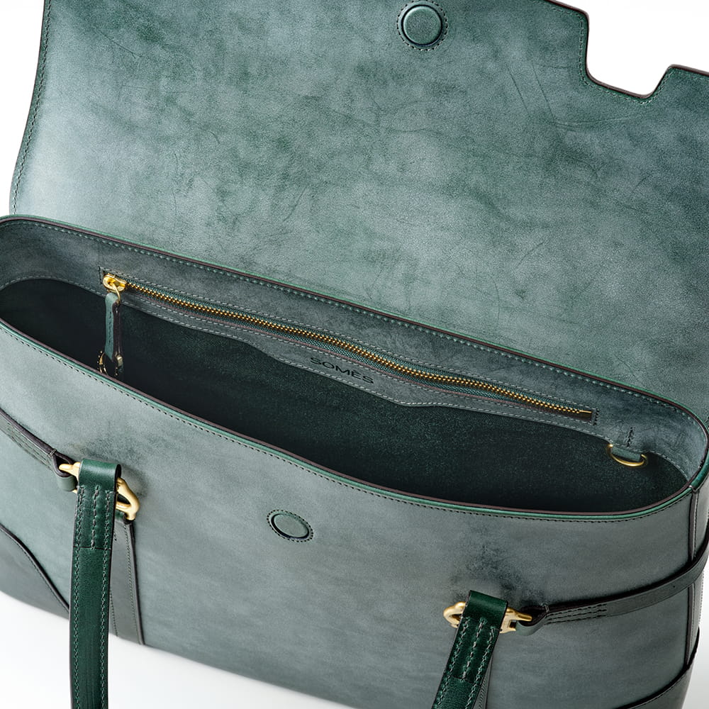 国産のステアを使用した、ベジタブルタンニン鞣しの牛革を使用。革表面の蝋はたっぷり染み込ませた油脂分のため、使うほどに透明感を増し輝く艶は馴染みながらより上品なたたずまいに変わっていきます。