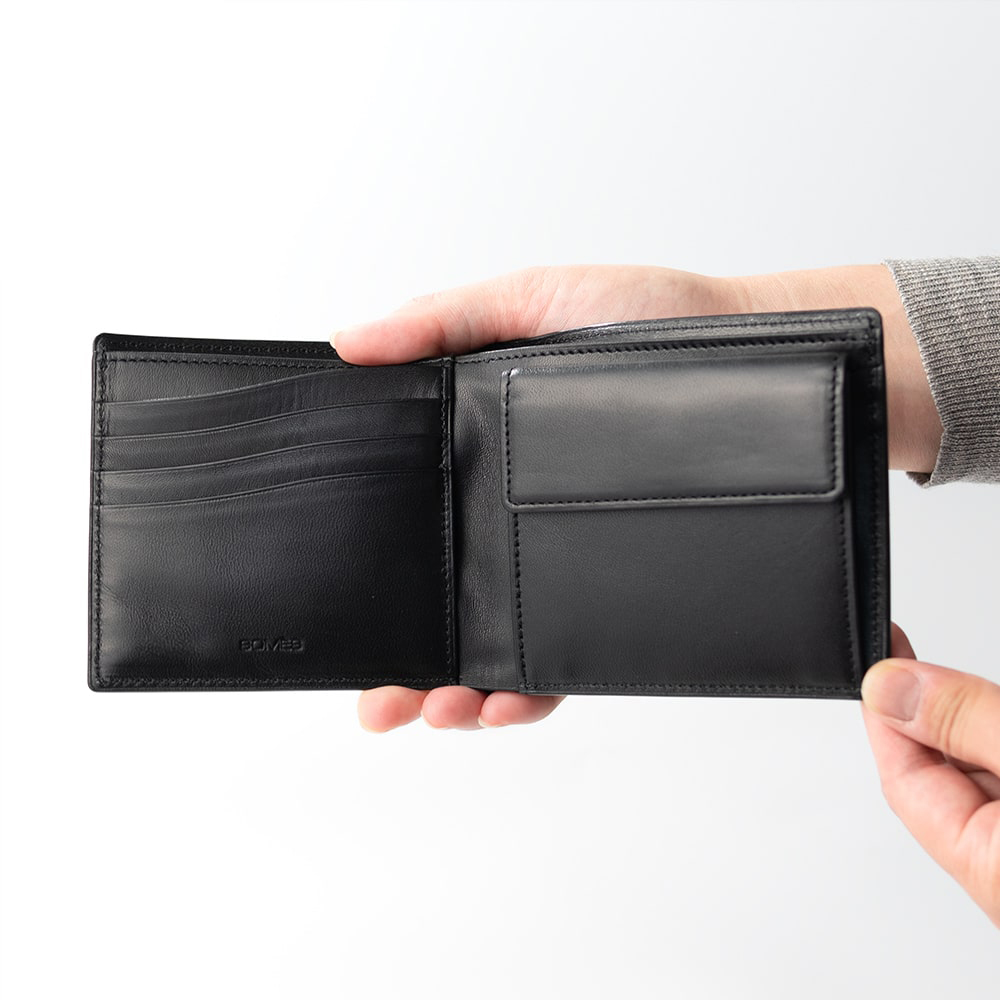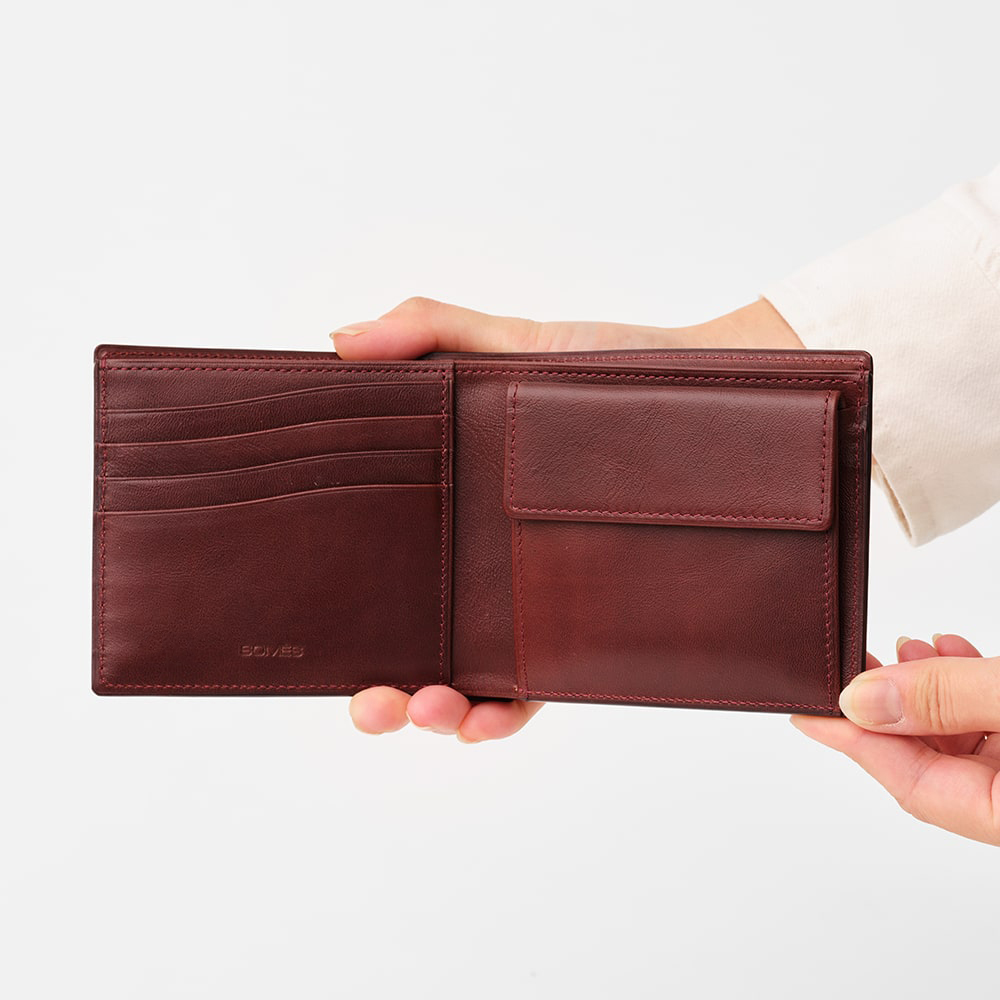 艶やかに輝くコードバンを用いた、人気シリーズ「ハノーバー 」の二つ折り財布がリニューアル。内装の素材を馬革に変更いたしました。