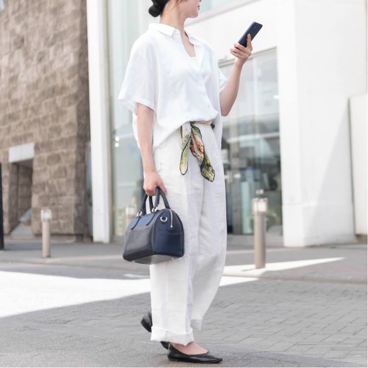 ナチュラルなシボや自然由来の染まりムラが、主張しすぎず、透明感と上品さを引き立てます。