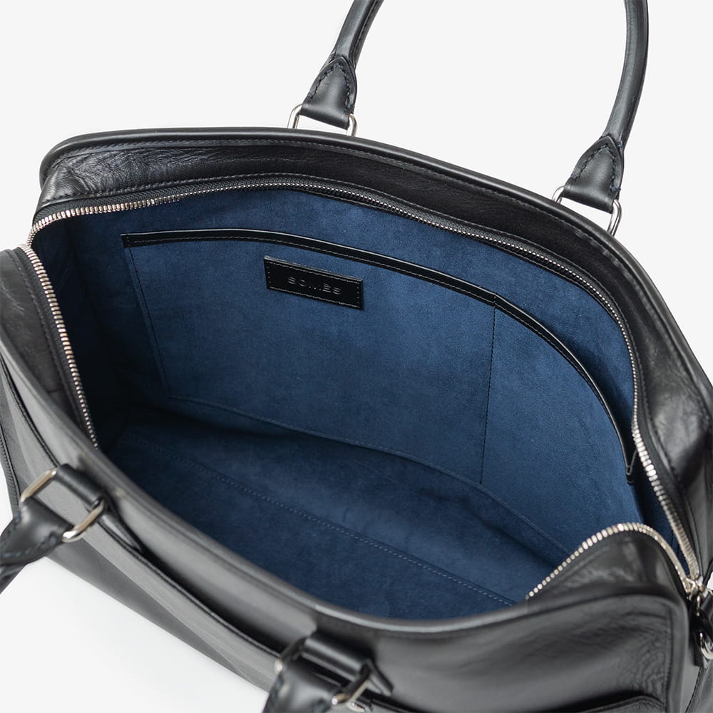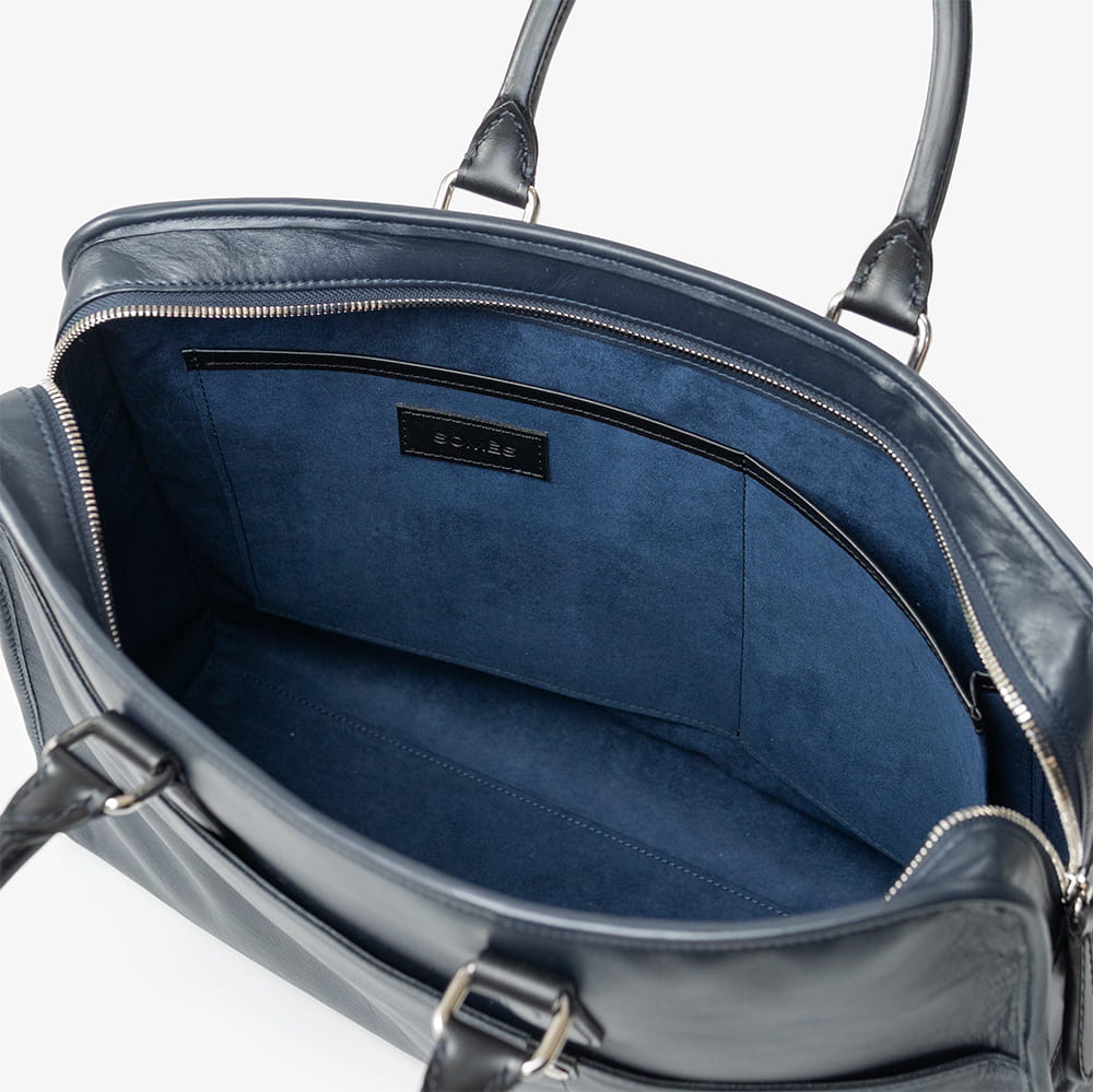 内装には手触りの良い人工スエードを採用し、書類やデバイスを優しく保護。