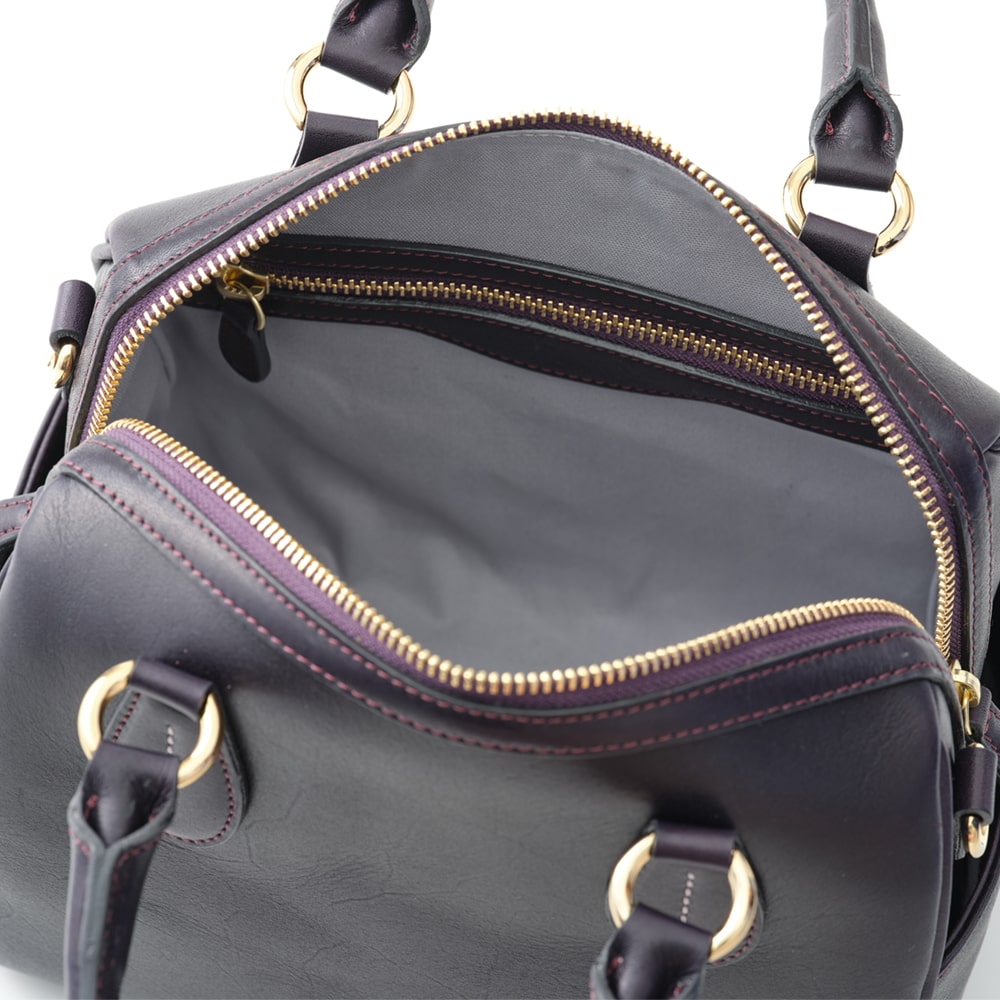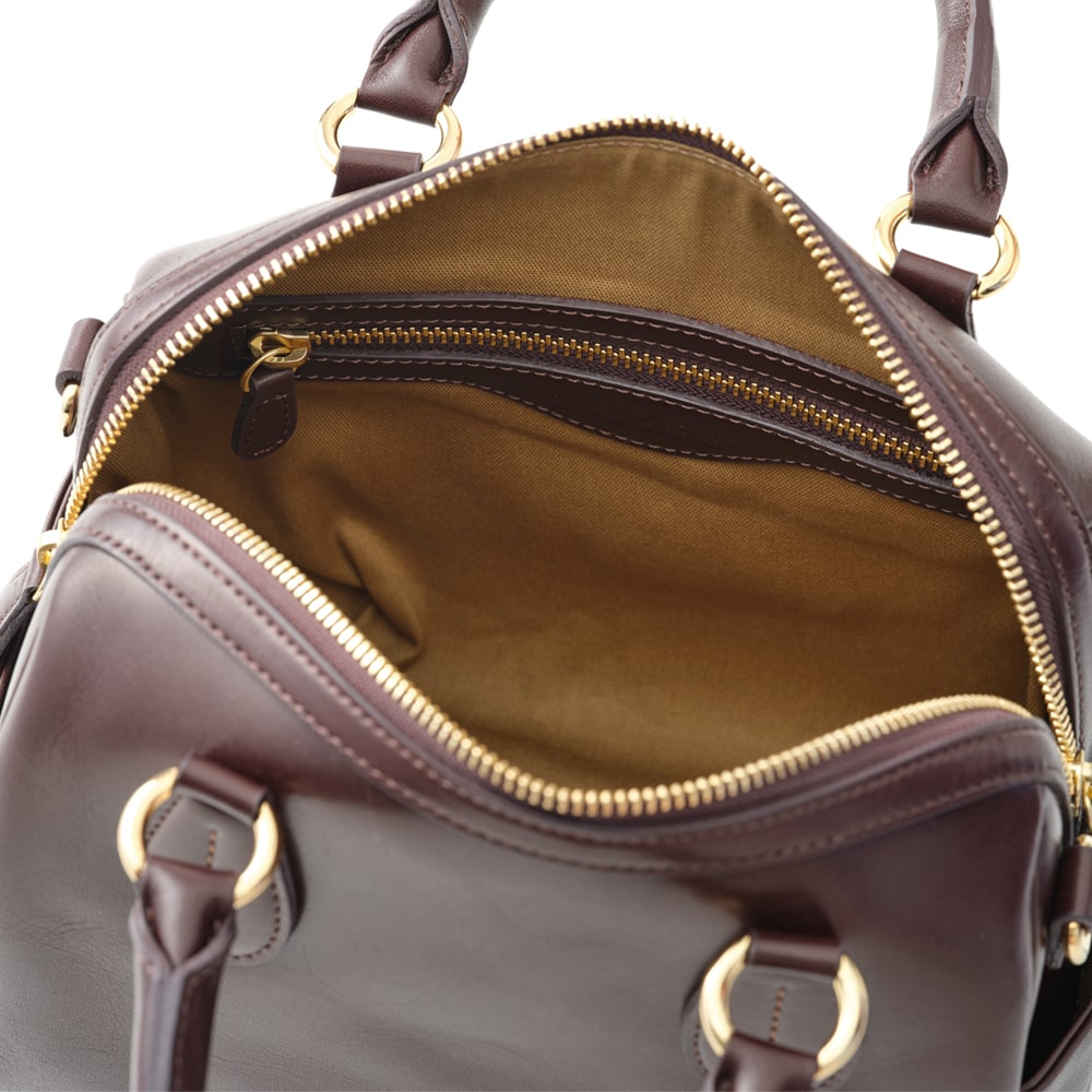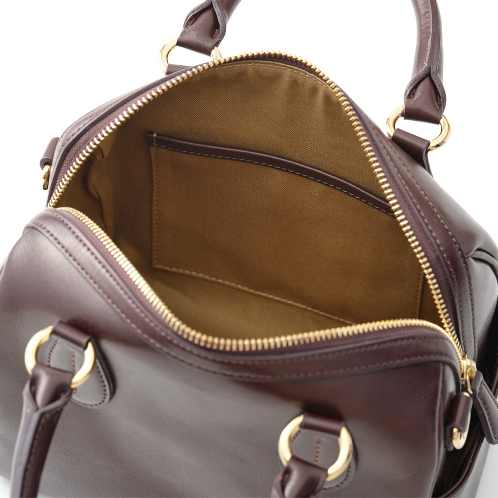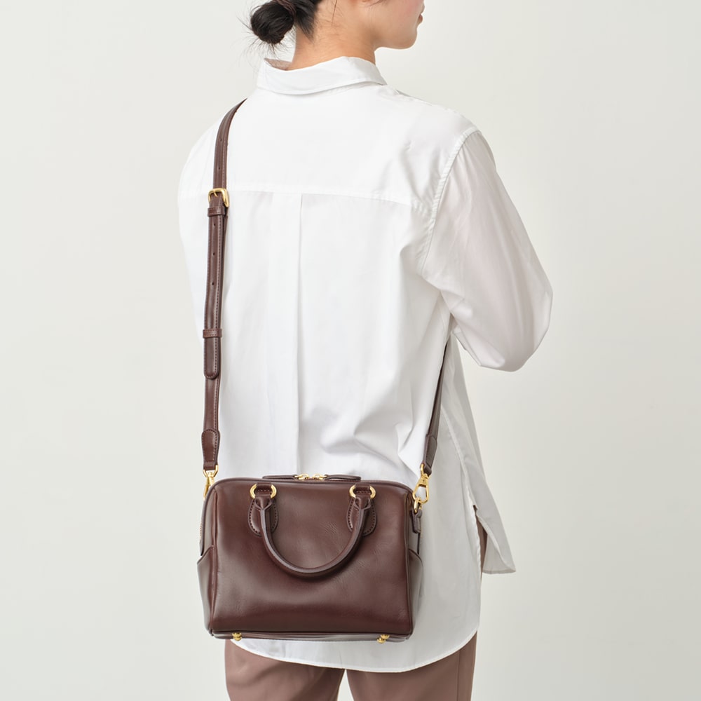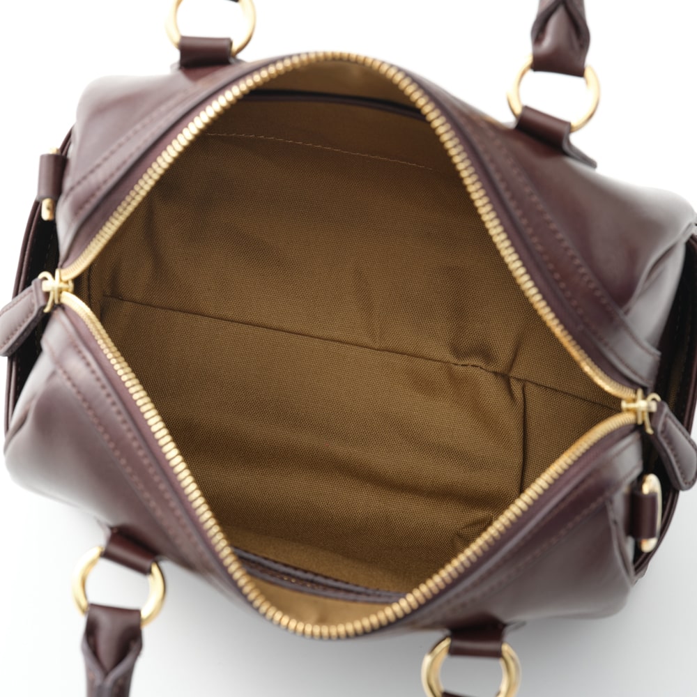主張しすぎず、必需品も収まる、ちょうどよいサイズ感が魅力の「エリン」。ミニボストンはコンパクトに見えて、底マチが広く、長財布もぴったりと収まります。