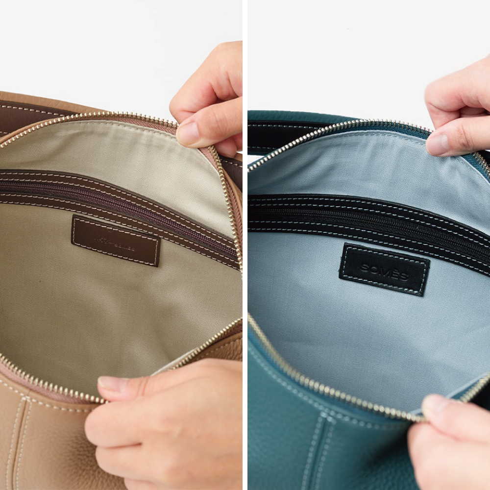 ふっくらとしたボリュームのある本体は、幅広いマチで安心の収納力。鞍の曲線美を取り入れたシルエット設計が、ソメスならではの上品さを漂わせます。
