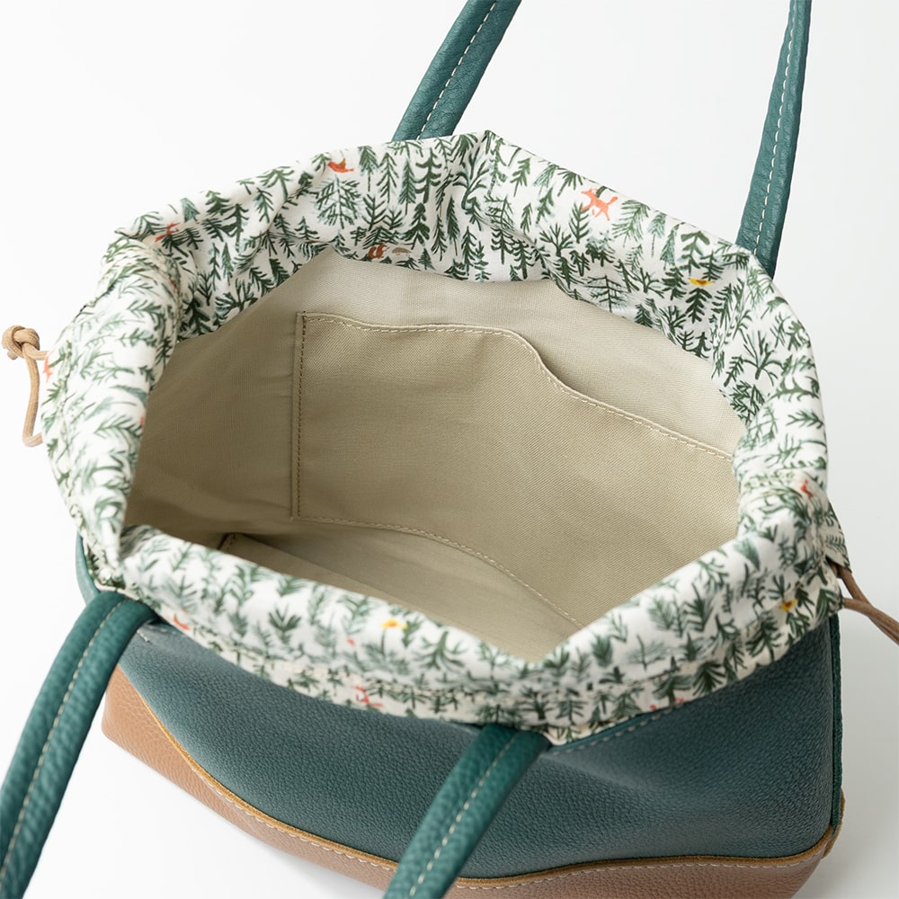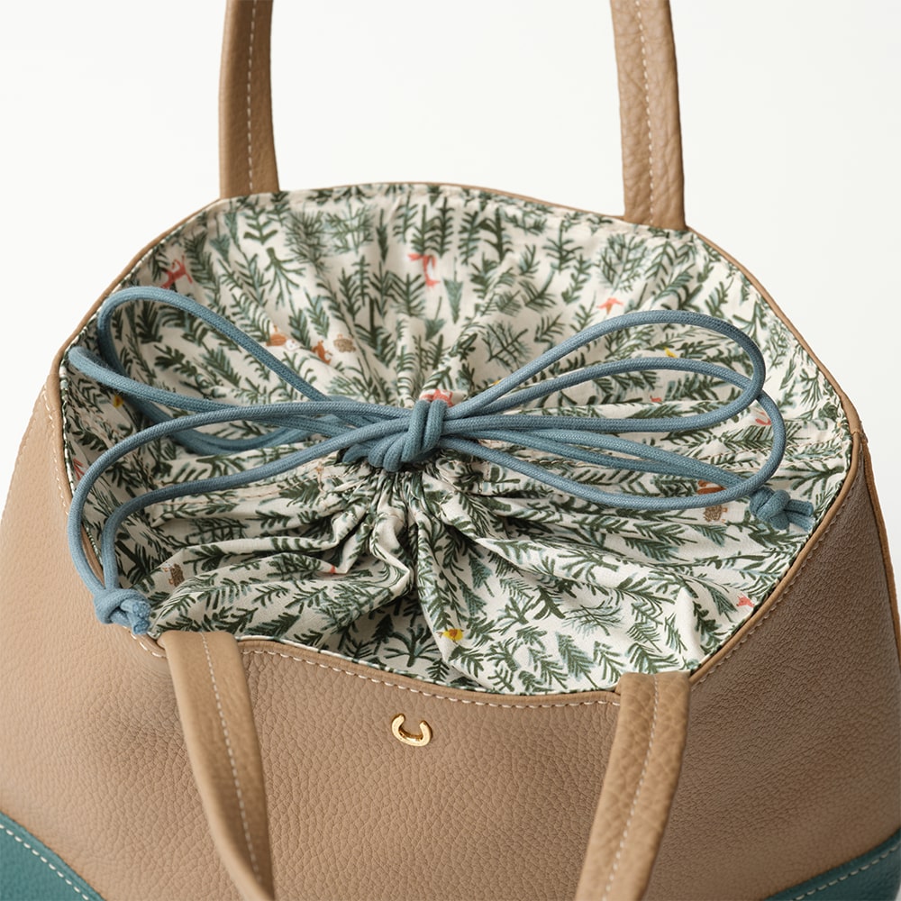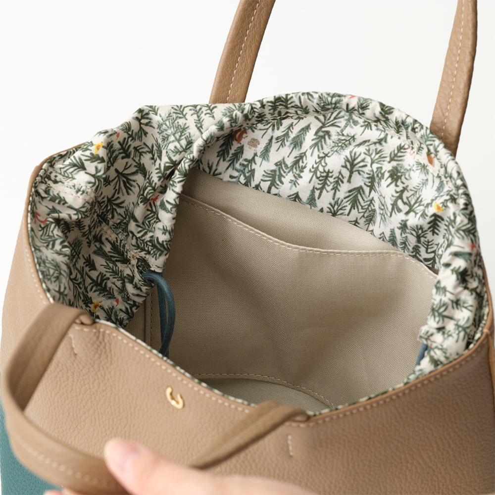 巾着仕様の開口部は、中身をさりげなく隠せる安心設計です。