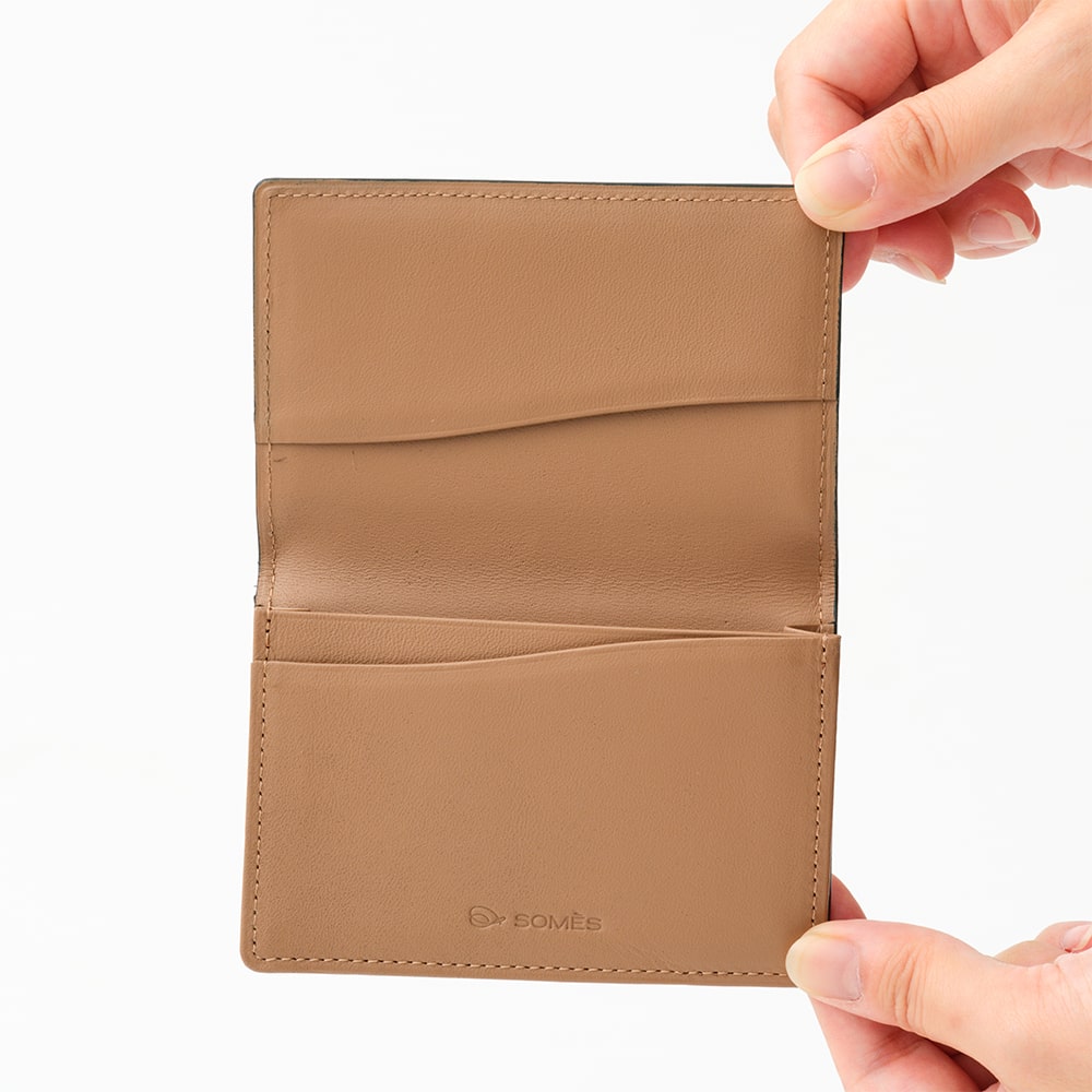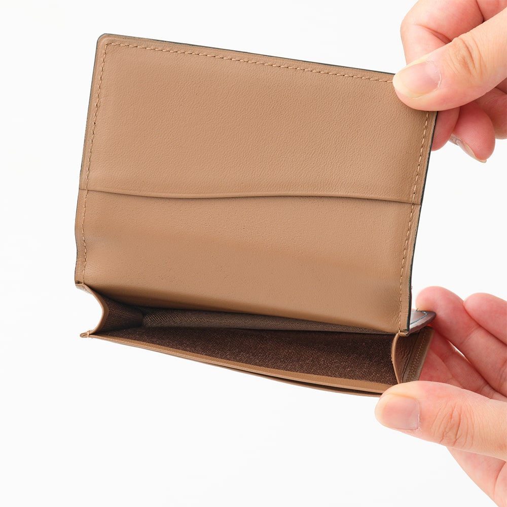 名刺が少ないときにはマチが内側に織り込まれ、すっきりとしたシルエットに変化します。