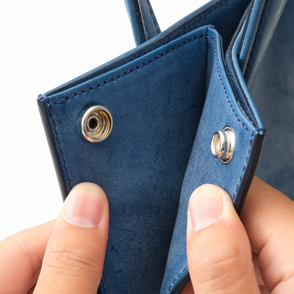 本体革には、国内原皮を植物タンニンで鞣し、国内で丁寧に仕上げたレザーを採用。表面に蝋引きした白い“ブルーム”は、使うほどに革へと馴染み、やがて深みのある艶へと変化します。