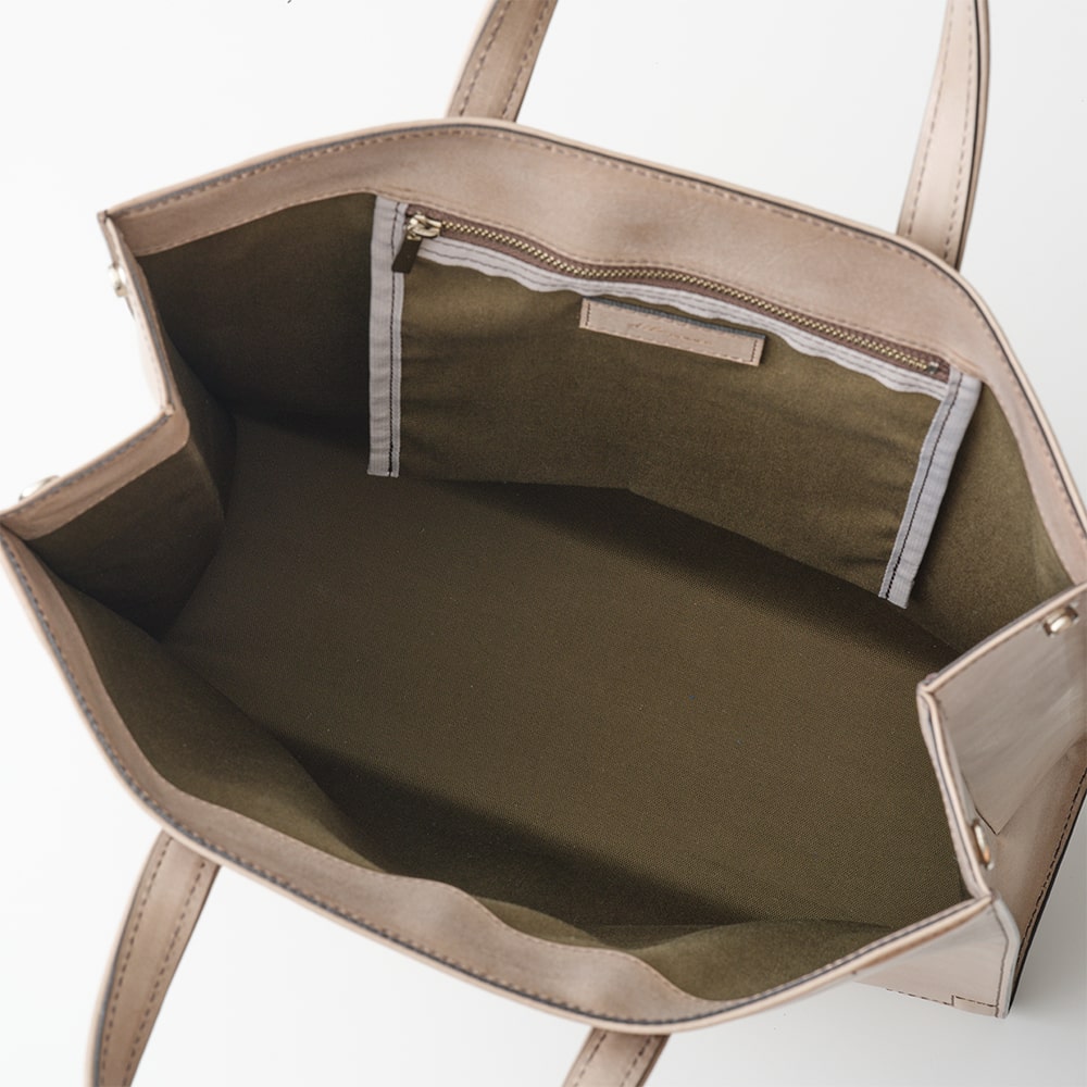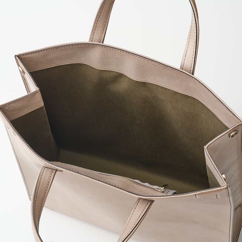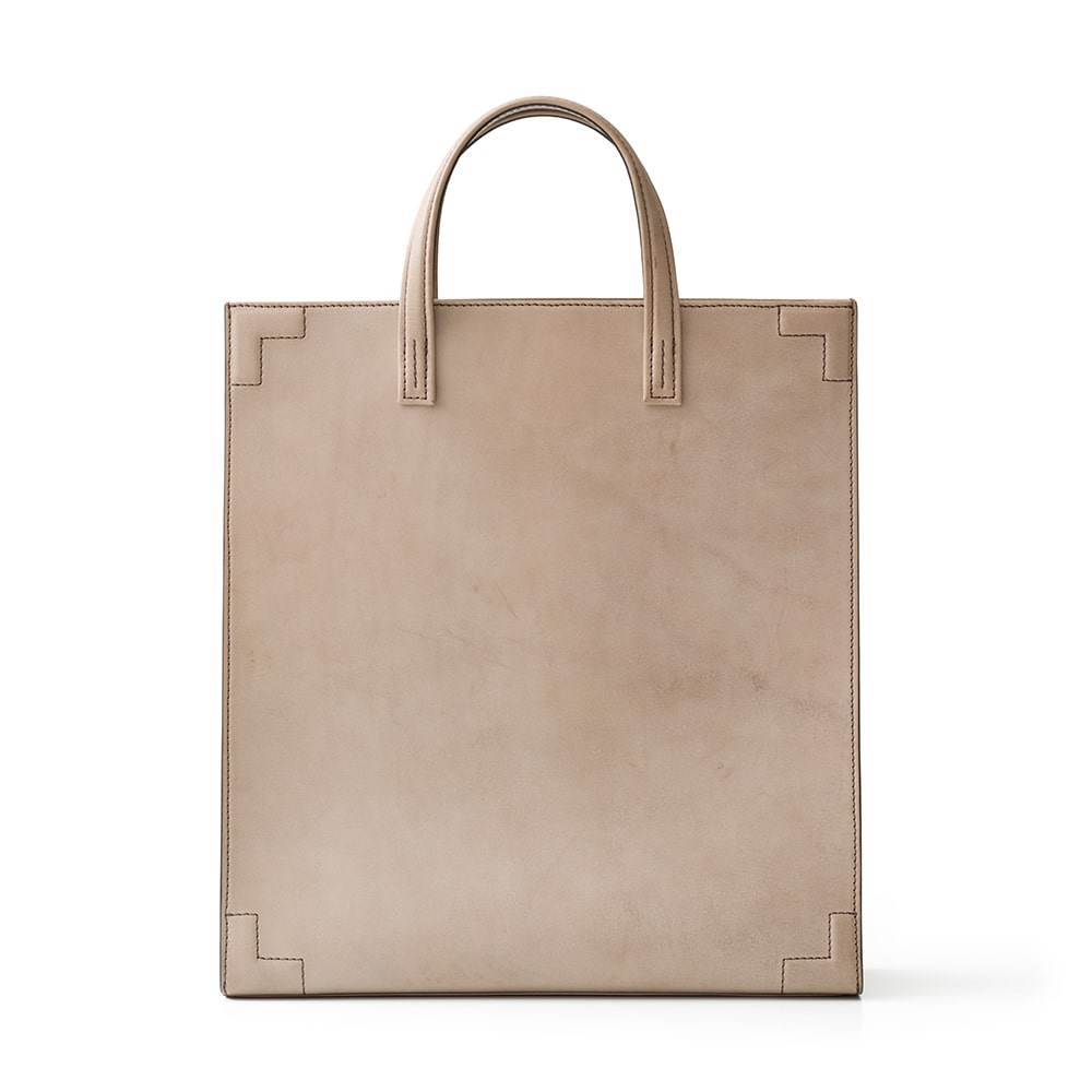 無駄を削ぎ落とした端正なデザインが、素材の魅力と縫製の美しさを際立たせるトート。