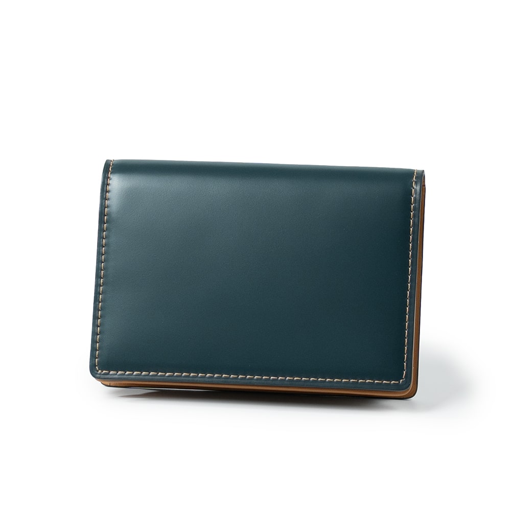 端正な佇まいとコードバンの艶が際立つ二つ折り財布。手に取るたびに、素材の美しさと上質さを感じられます。