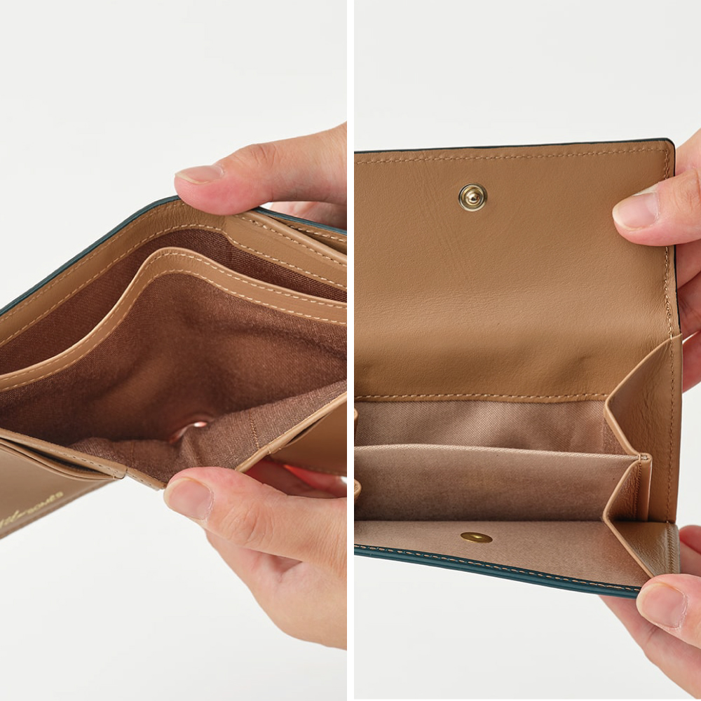お札は折らずに収納でき、小銭入れは二層式で種類ごとに仕分けが可能です。