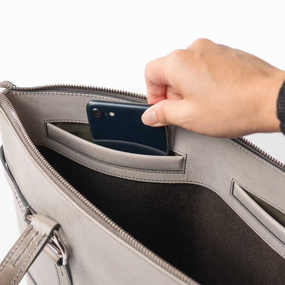 サイドのオープンポケットには、携帯電話や鍵など、出し入れの多い小物をすっきり収納できます。