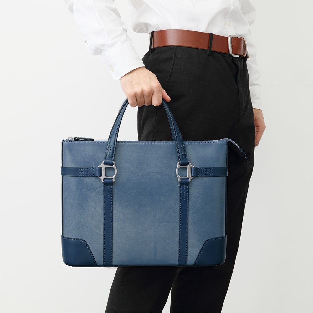軽やかに仕立てられた「スクエア」のスリムブリーフケース。