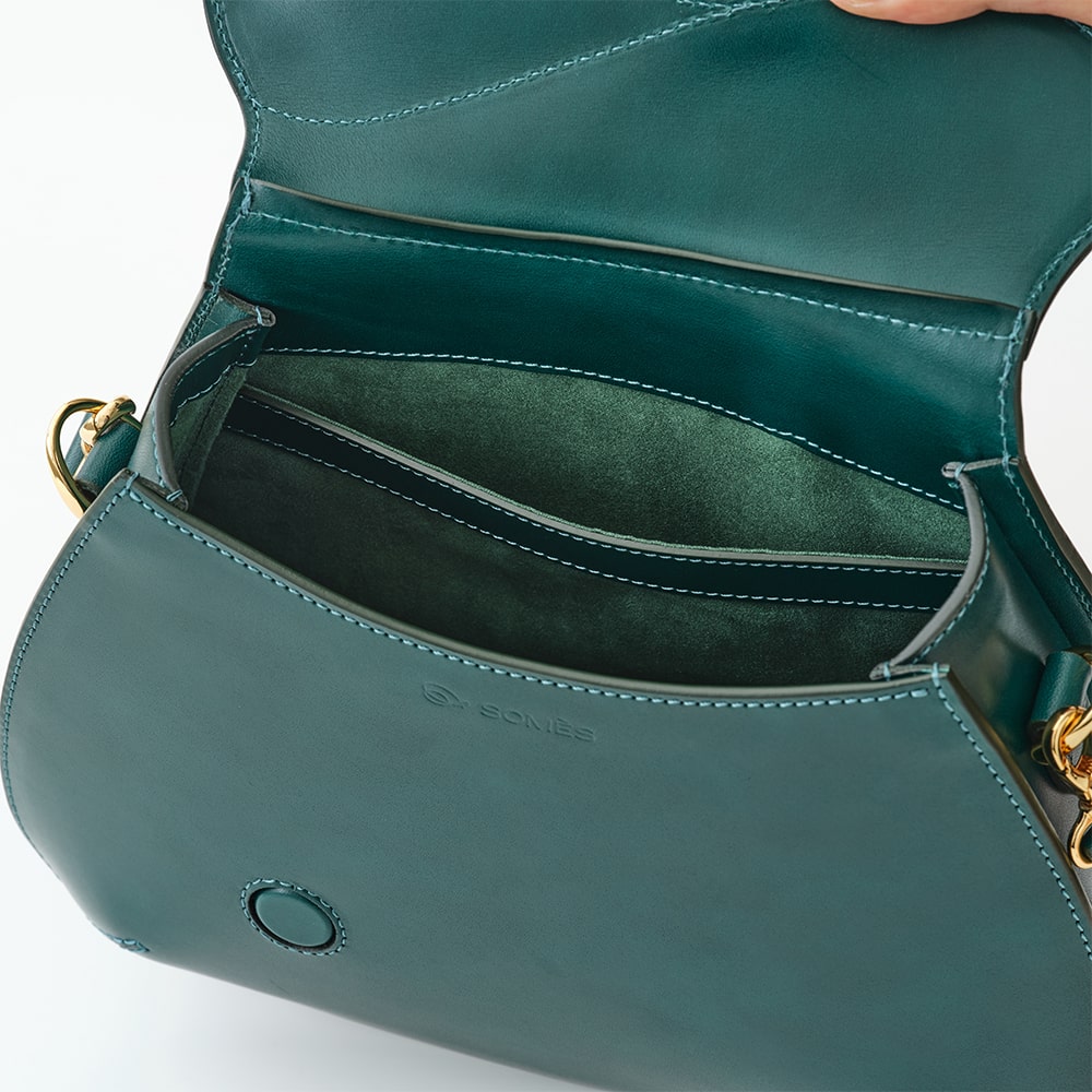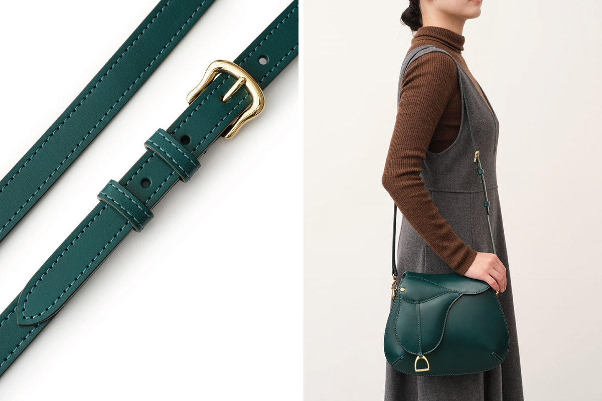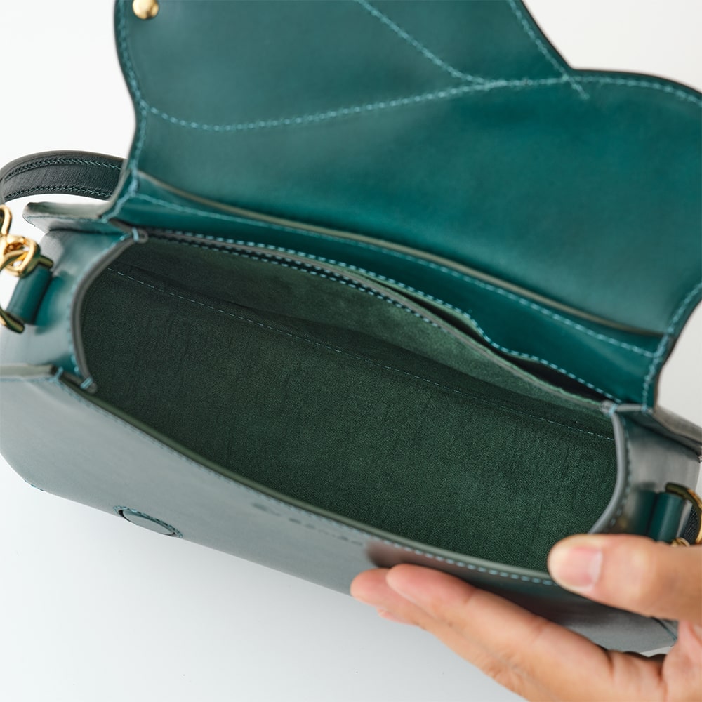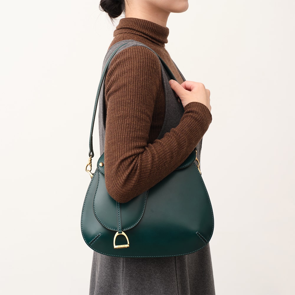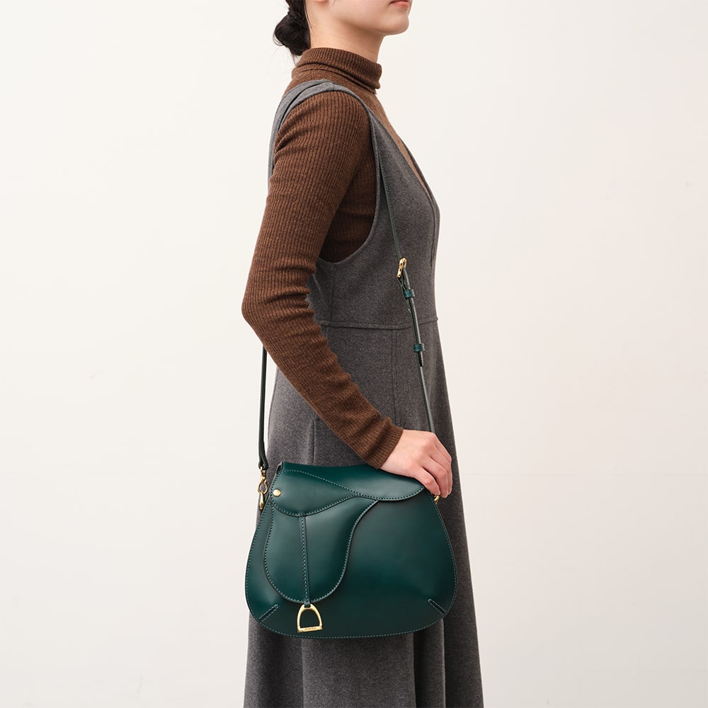 鞍を思わせる立体的なフォルムに、柔らかな艶が寄り添うサドルショルダー。