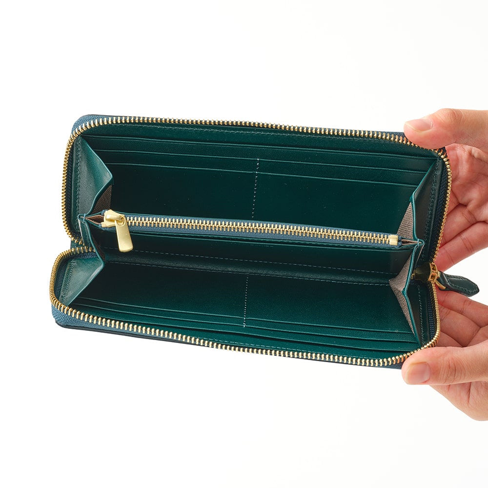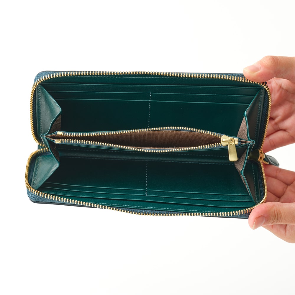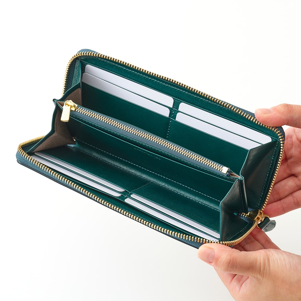 長財布ならではの収納力を備えながら、無駄を極限までそぎ落とした、すっきりとした佇まいが特徴です。