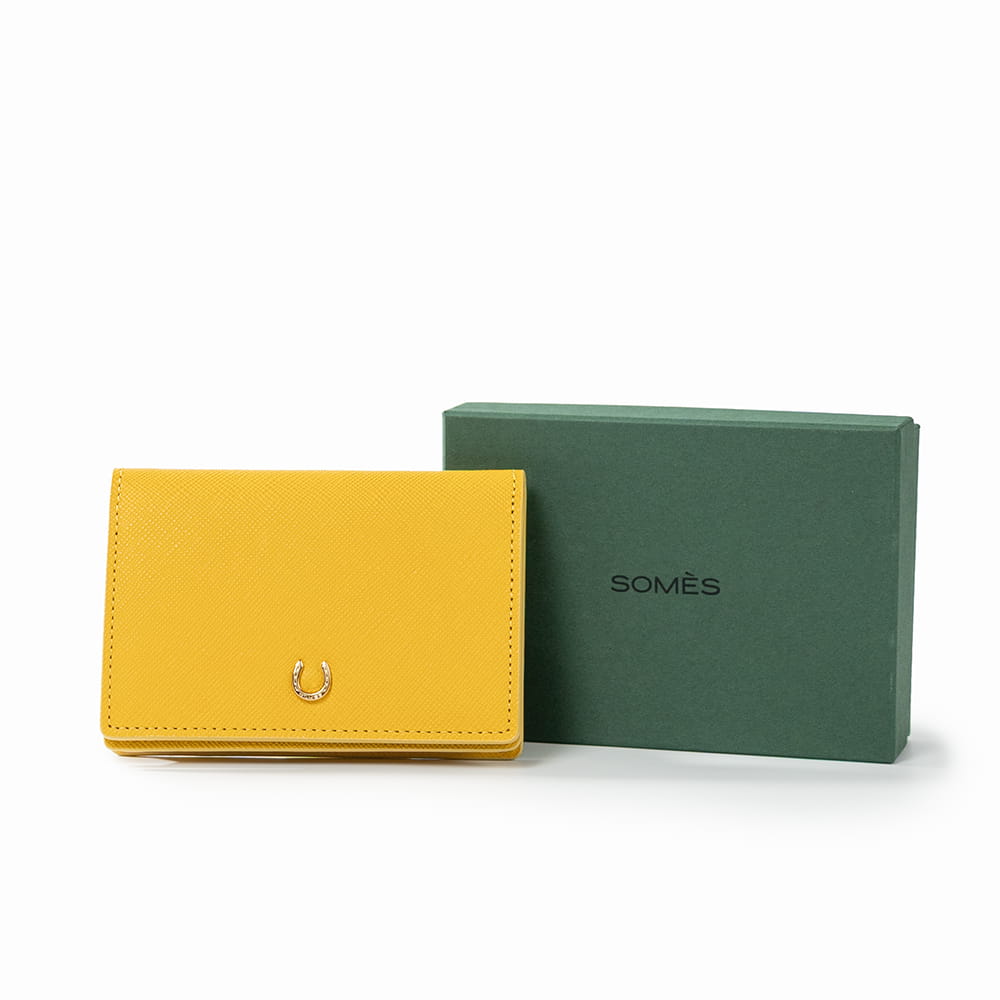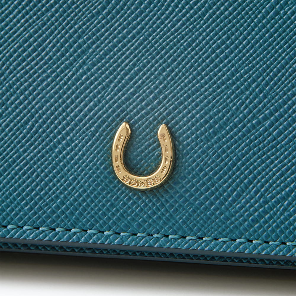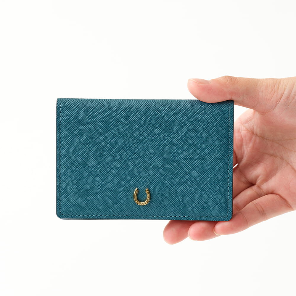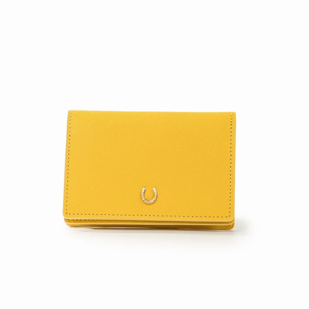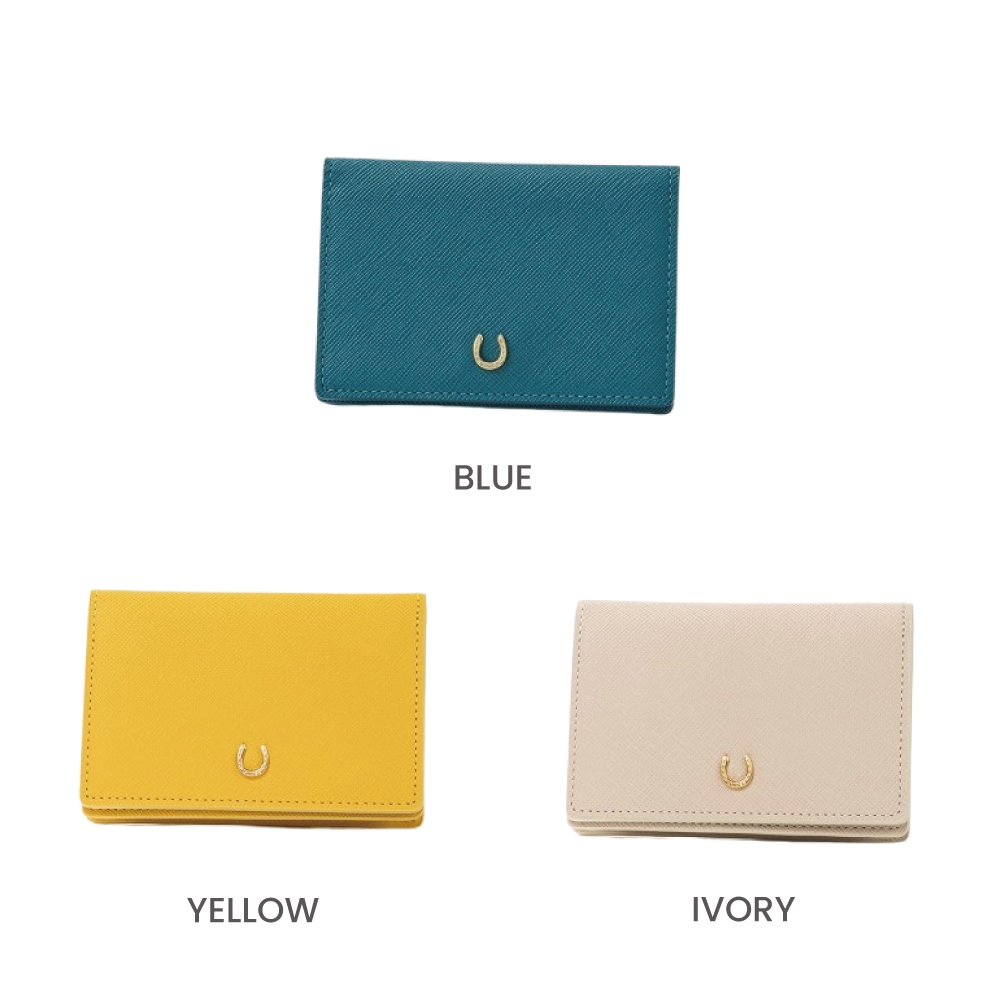 幸運のモチーフ蹄鉄を添えた「ピルエット」シリーズの名刺入れ。