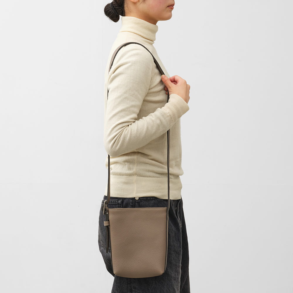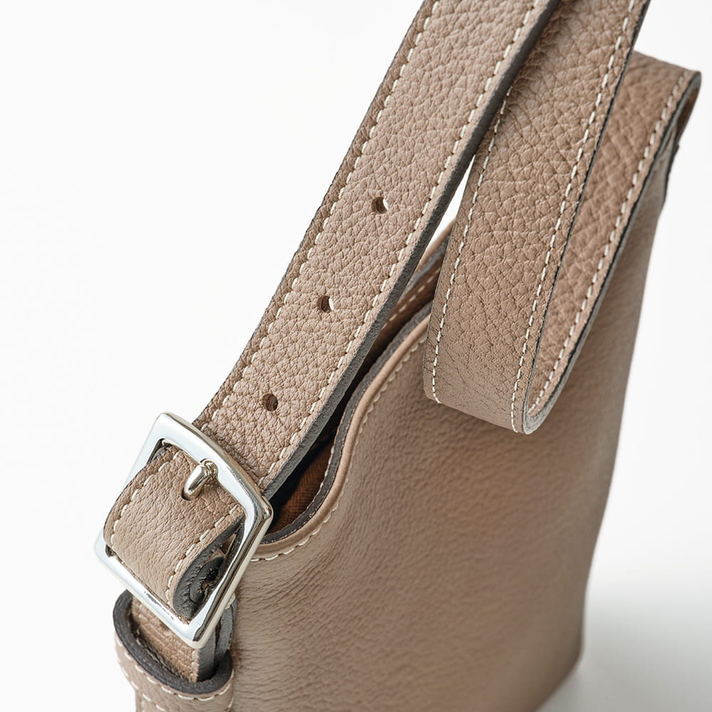 気負わず持てて、すっと肩に掛けられる「バケット」シリーズのミニショルダーバッグ。