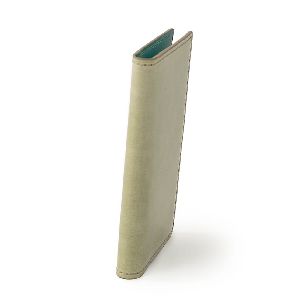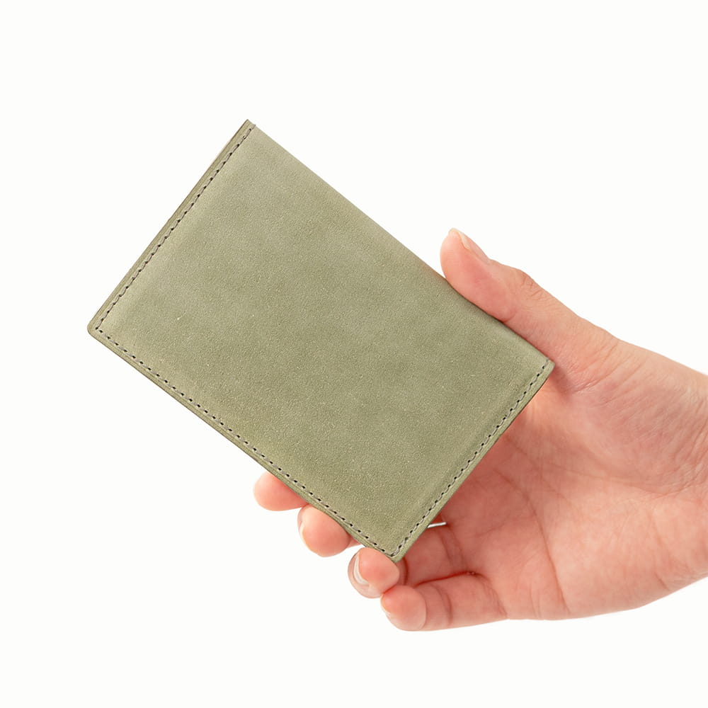 ワックス越しに霞むグリーンは、使い込むほどに深みを増し、抹茶のような落ち着いた色合いへと移ろいます。