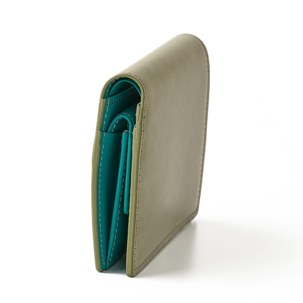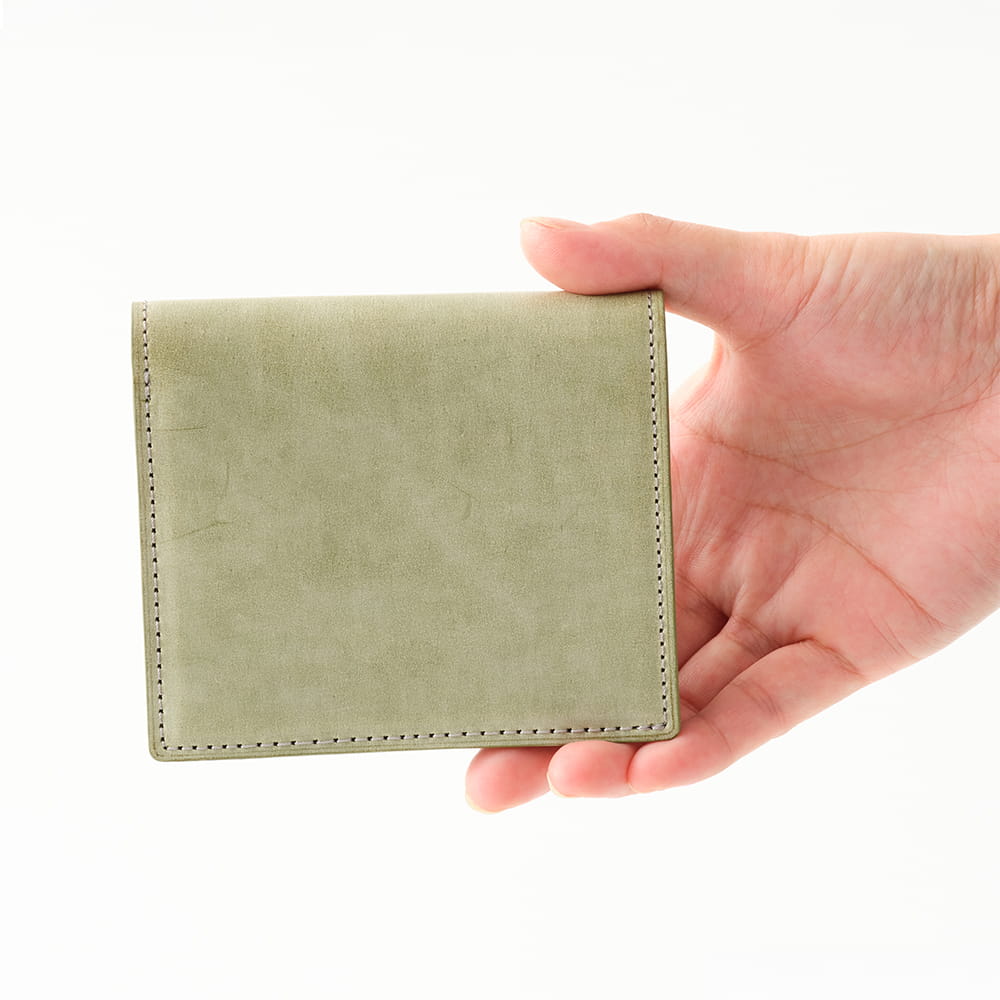 ワックス越しに霞むグリーンは、使い込むほどに深みを増し、抹茶のような落ち着いた色合いへと移ろいます。