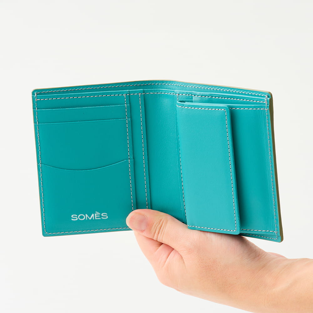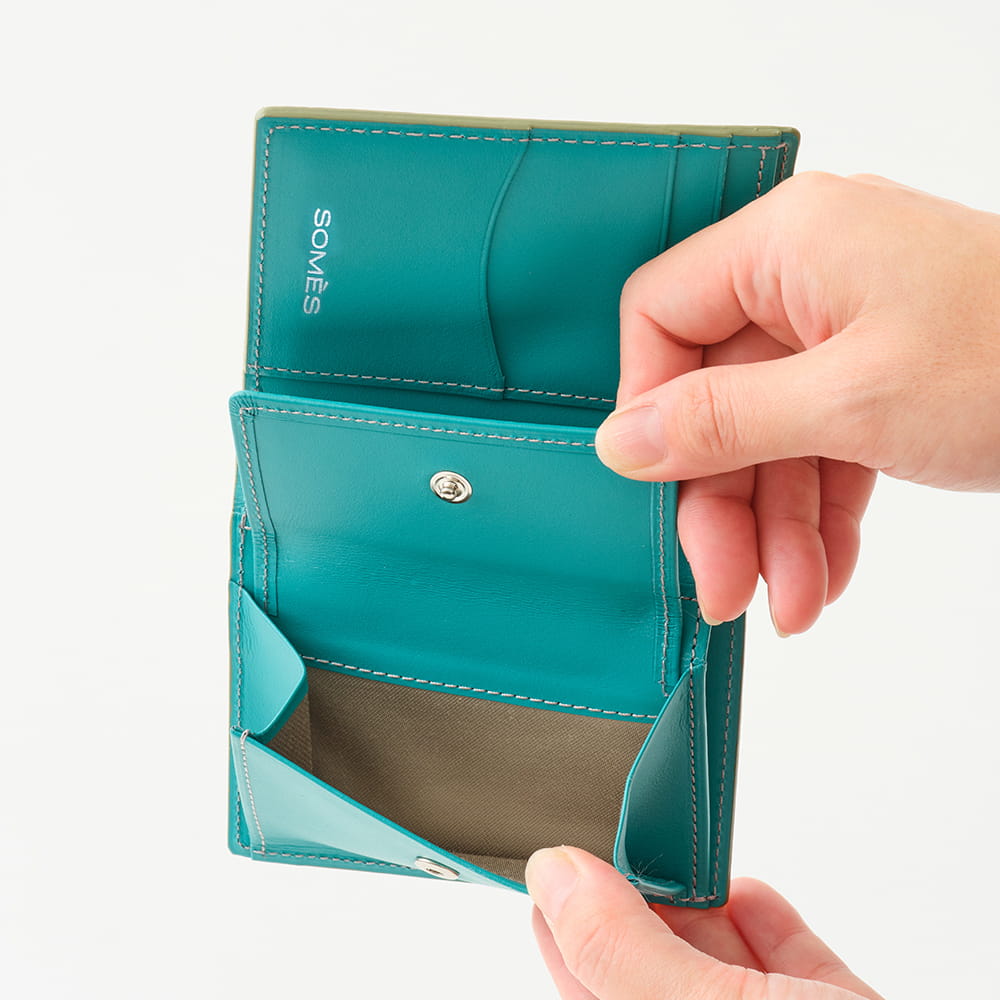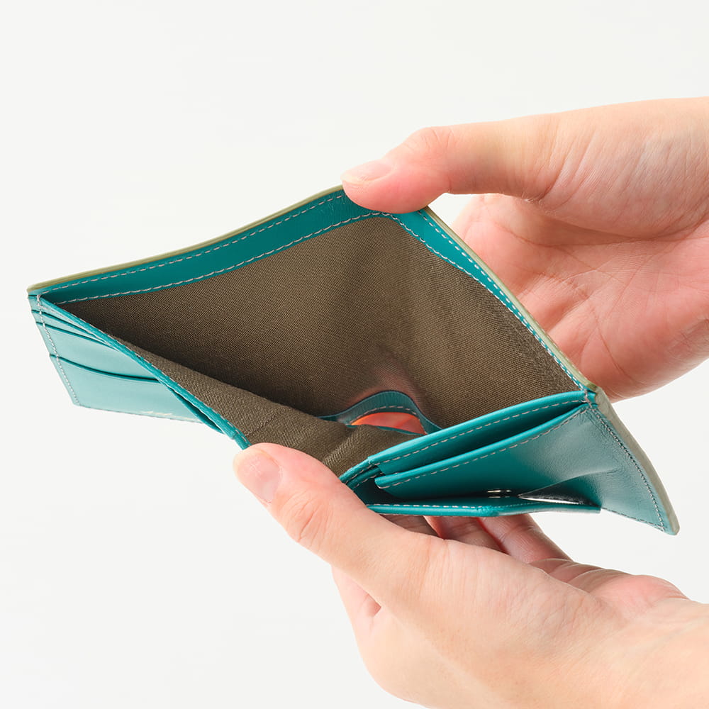 コインケースと札入れの裏地には、光沢感のあるコットンレーヨンのサテン生地を採用。