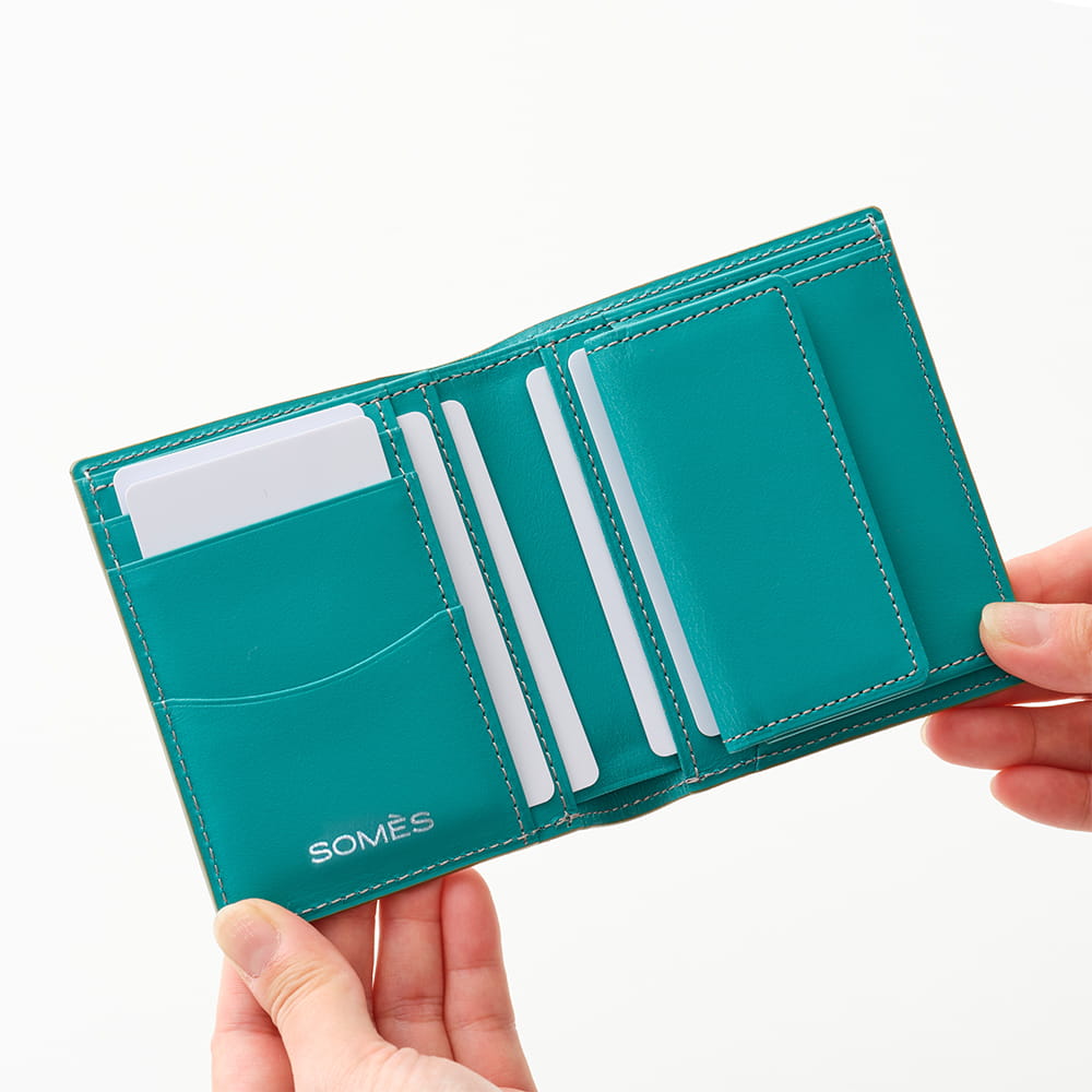スリムな見た目ながら、カードポケット5箇所、フリーポケットを2箇所設置。