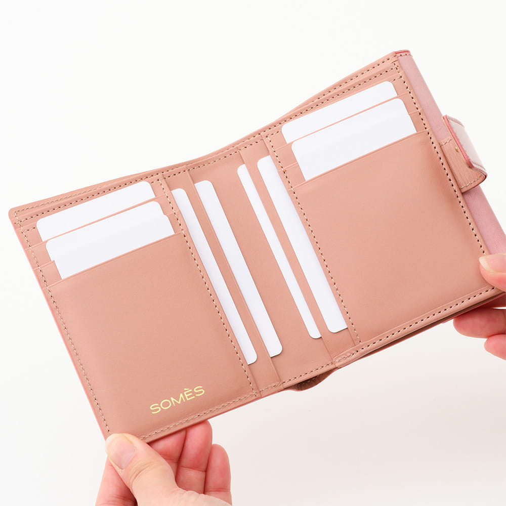 カードポケット6室とフリーポケット4室を備え、見た目以上の収納力を実現。