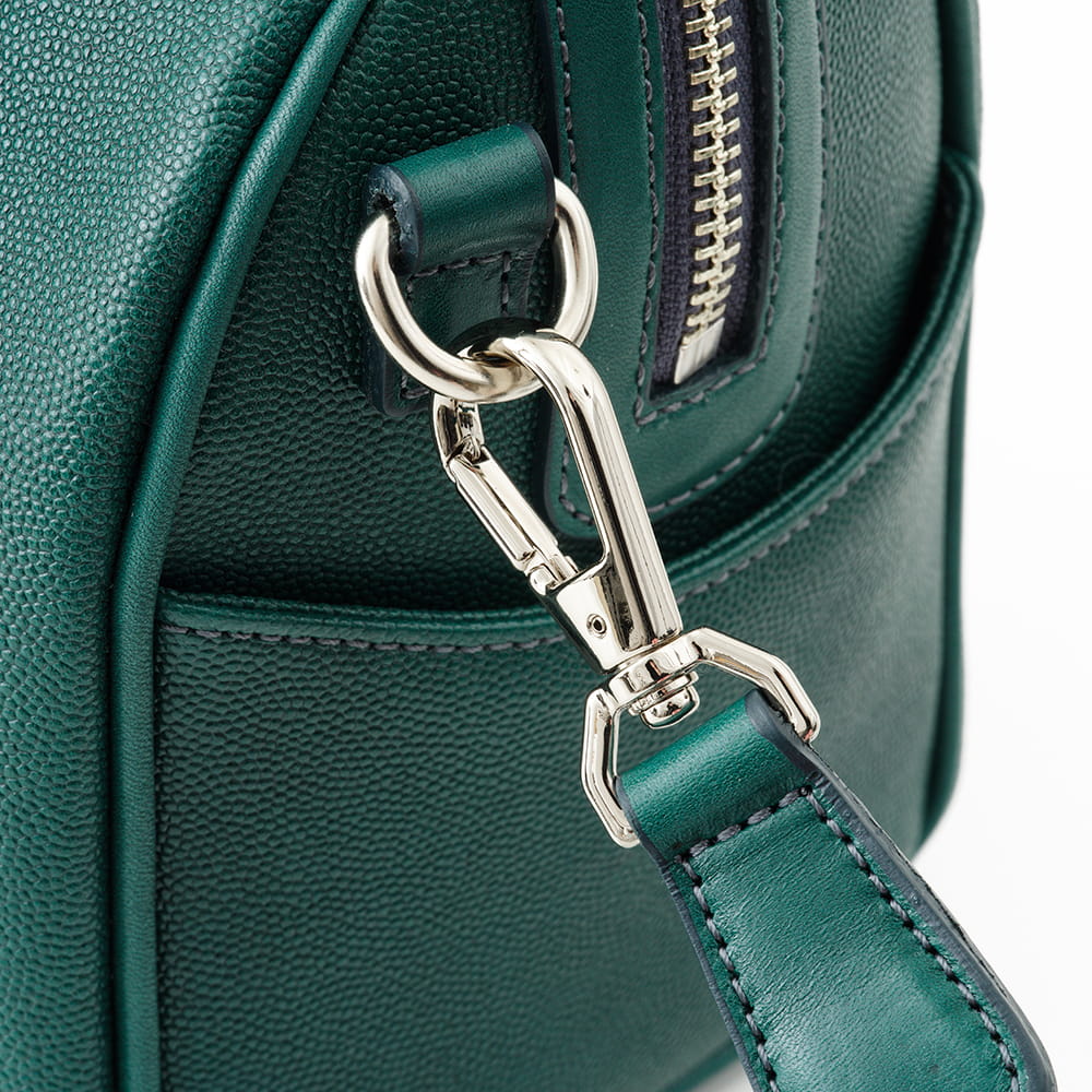 ハンドルやファスナー周りには、型押しを施していない同色の革を使用。