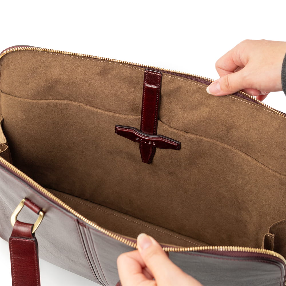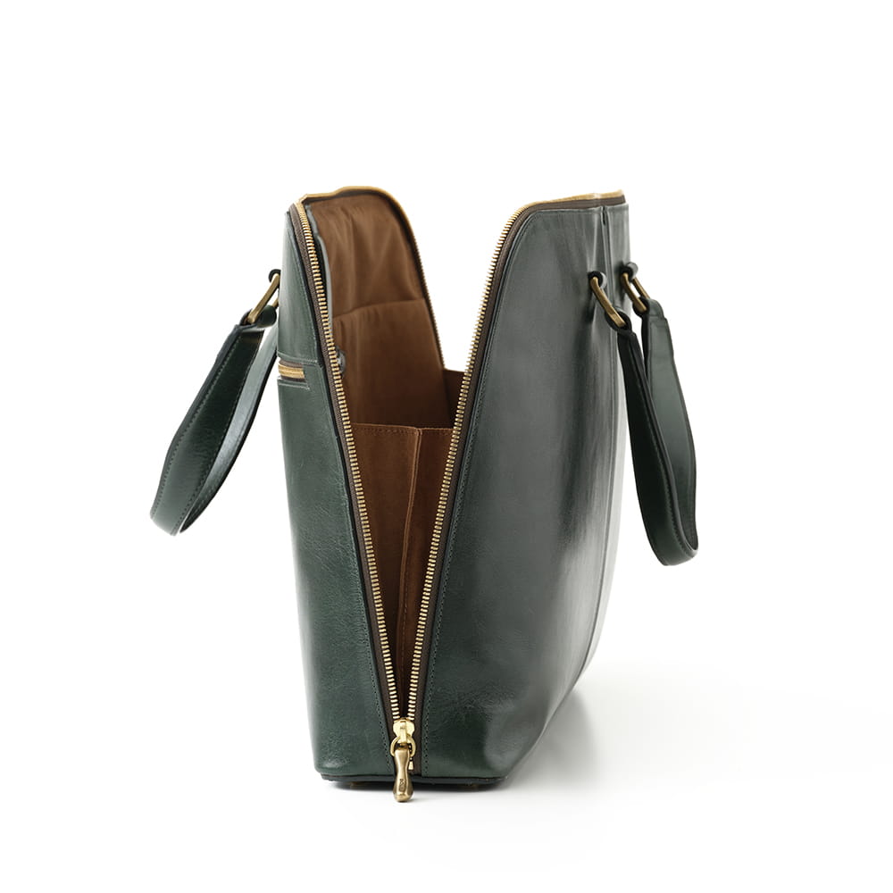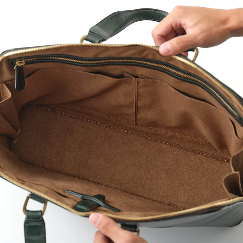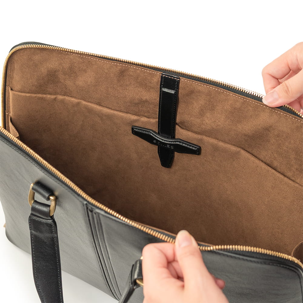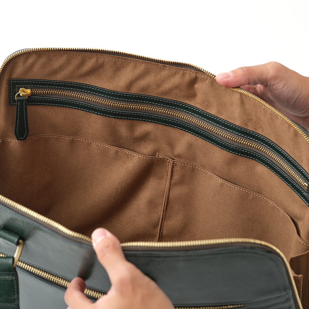 底面まで大きく開くファスナー構造で、持ち物の出し入れも滑らかに。