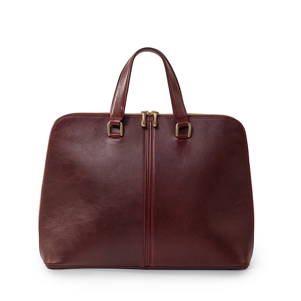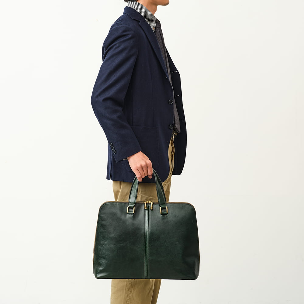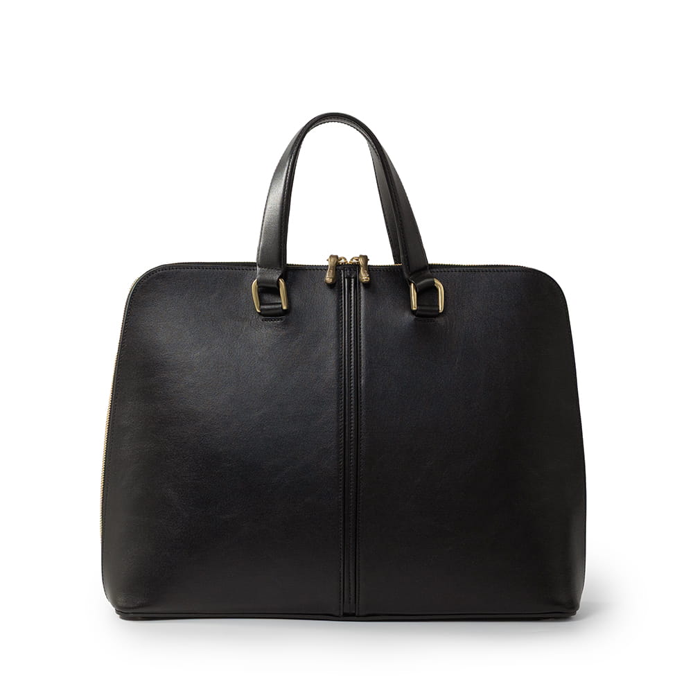 装いに端正な印象を添えるブリーフケース。