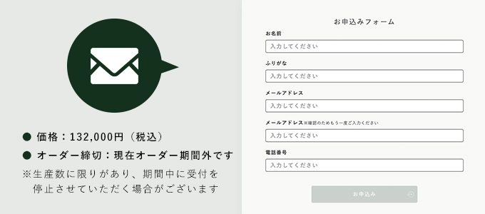 注文したい色が決まったら、好きな文字を入れられる刻印サービスやギフト包装(どちらも無料)のオプションをご選択の上、専用のフォームからご注文ください。その後、オンラインショップにてお届け先の入力と決済お手続きをお願いいたします。お支払いはクレジットカードとなります。