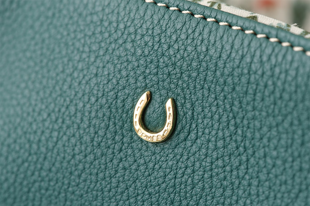 ヨーロッパでは幸せの象徴とされるU字型の蹄鉄。上向きのカーブには「幸せを受け止める」という意味があり、バッグのアクセントとして煌めきます。クラシックなモチーフに込められた願いが、特別な季節を優しく彩ります。