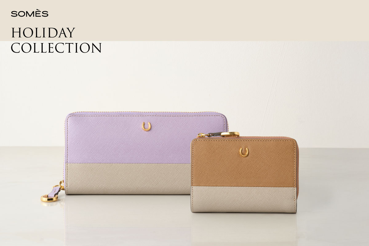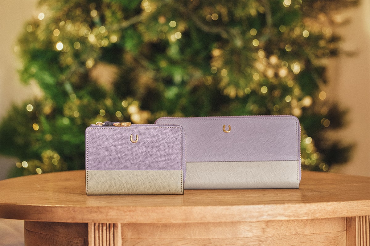 透明感のある型押し革に、幸運のモチーフ「蹄鉄」を添えた「ピルエット」シリーズから、ホリデーシーズンだけの特別カラーが登場しました。