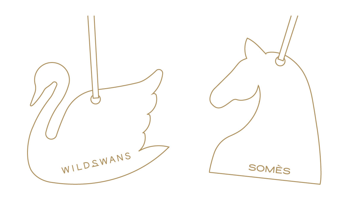 ノベルティは、両ブランドを象徴する“馬”と“スワン”をかたどったレザー製チャームの2点セット。馬チャームはSOMÈS、スワンチャームはWILDSWANSが製作しました。
