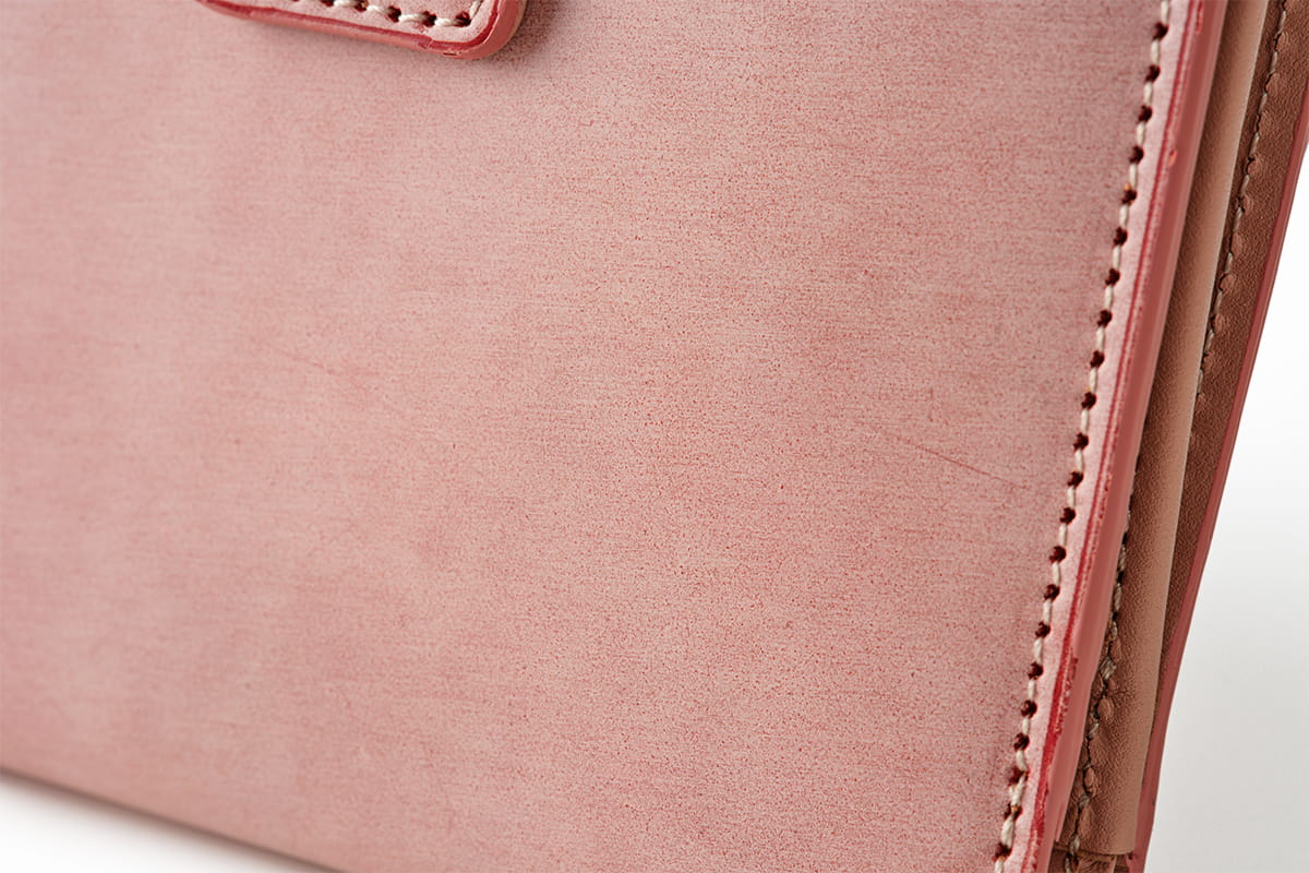 桜色を思わせる淡いピンクは、やわらかく穏やかな佇まい。使い込むほどに赤みが増し、深みのある艶をまとっていきます。