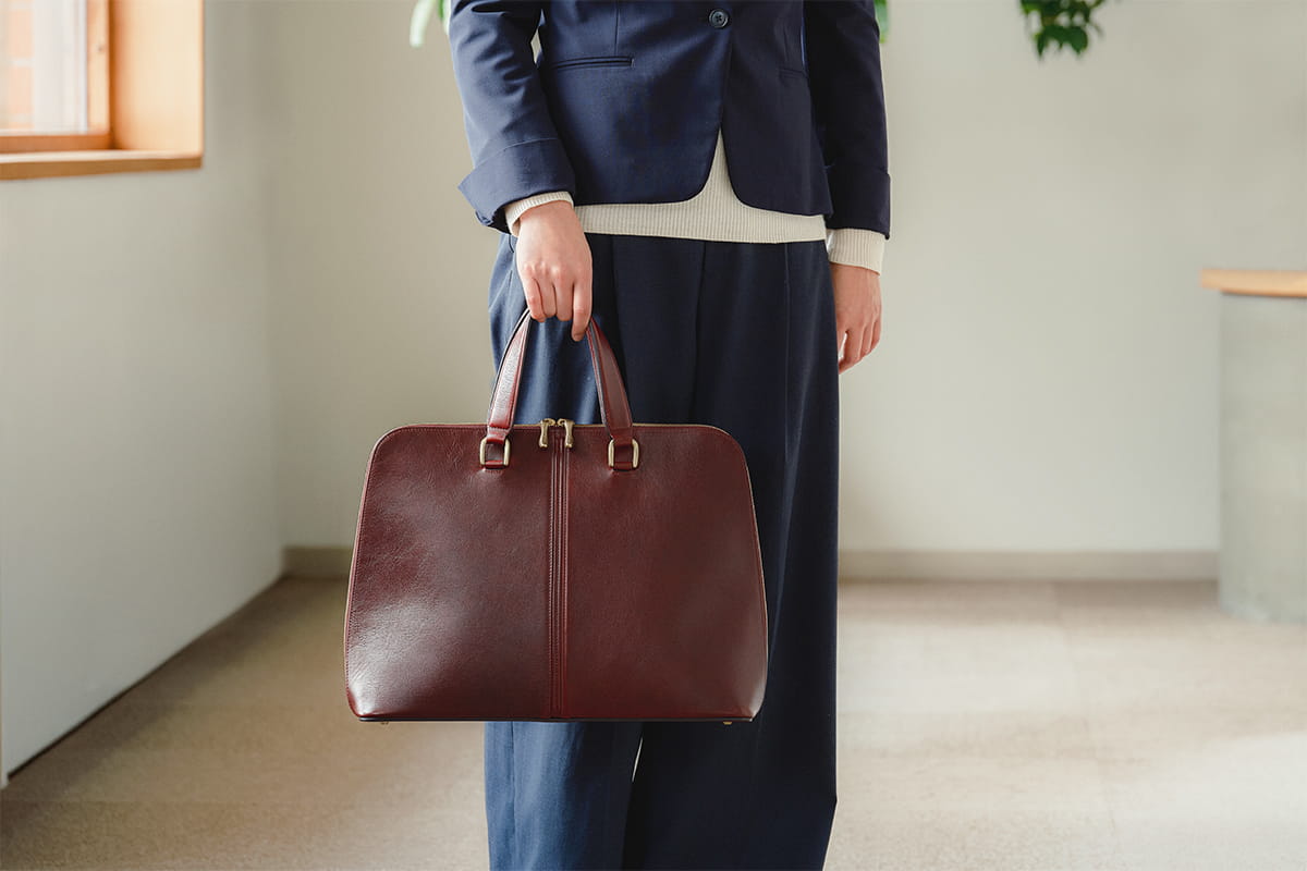 静かな存在感を宿す横型ブリーフケースは、装いの印象をさりげなく引き上げます。