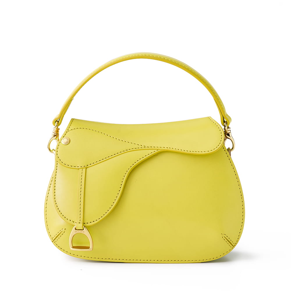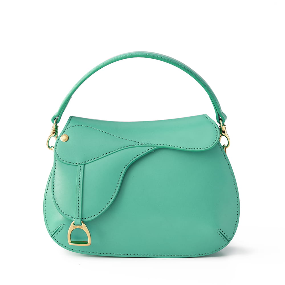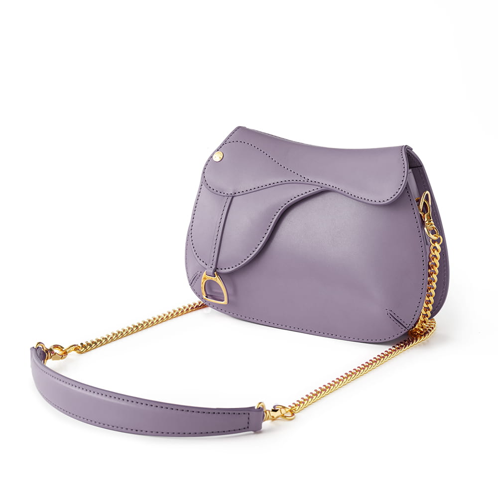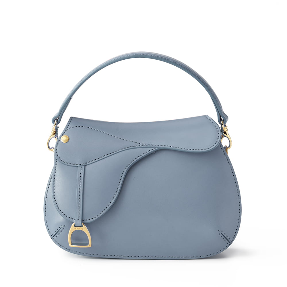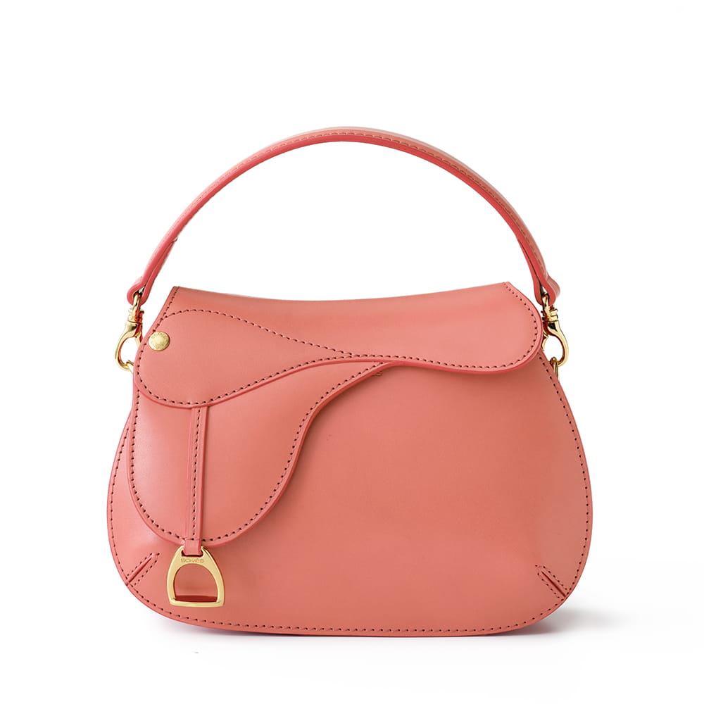 やわらかな曲線を描く鞍型のフラップ。ふっくらと立体的に仕立てたフォルム。馬具づくりの技術を背景に生まれた「ドレッサージュ」は、可憐さのなかに確かな意匠を宿す、ソメスを象徴するシリーズです。
