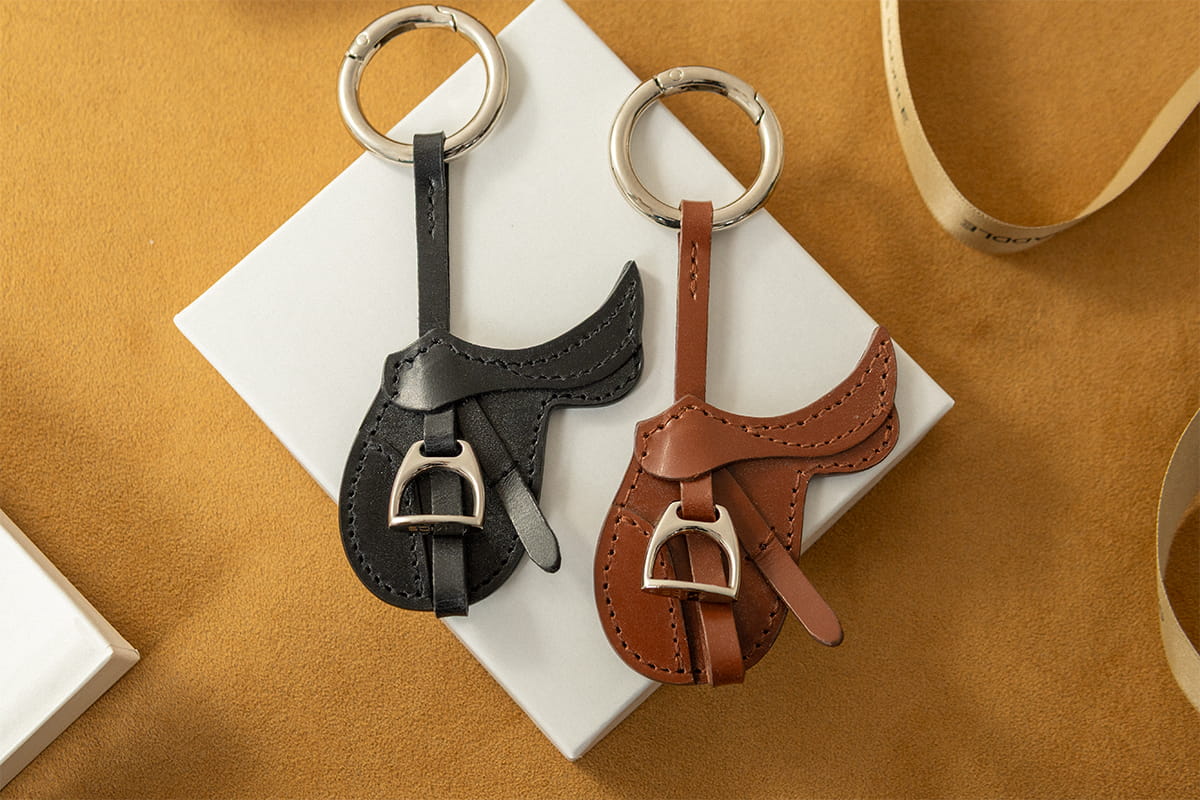 素材には馬具にも用いられるブライドルレザーを使用。表面に淡く浮くブルームとともに、アオリのラインや鎧革に施すステッチワークまで、実際の鞍をもとに丁寧に再現しています。