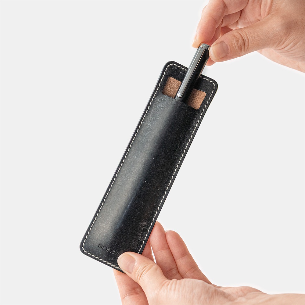 ブライドルレザーを使用した、シックなブラックのペンケース。