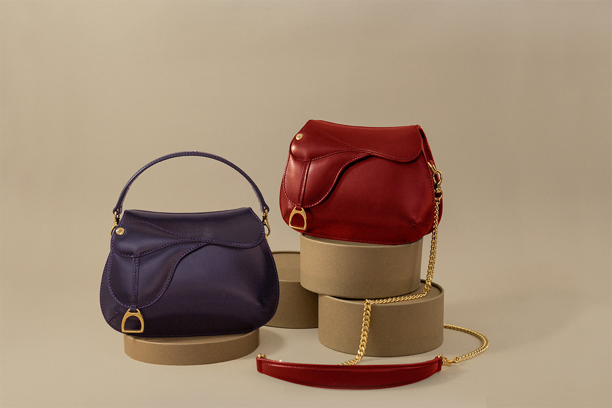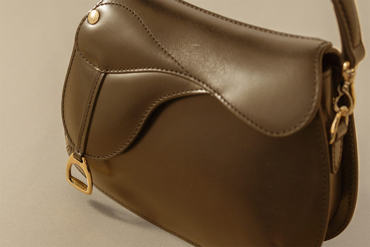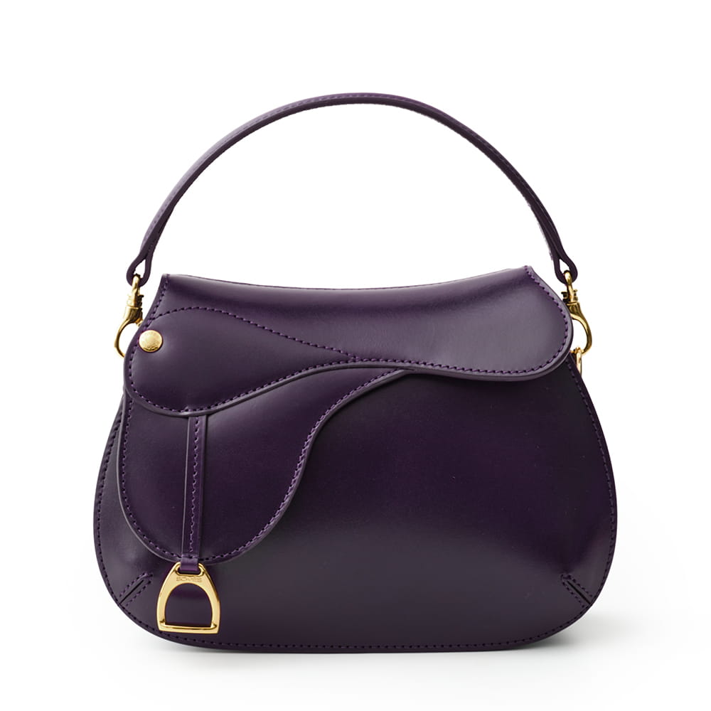 ソメスを代表する人気モデル「ドレッサージュ ミニ」。ころんと丸みを帯びたシルエットに、鞍の意匠を取り入れたデザインが目を引くシリーズです。