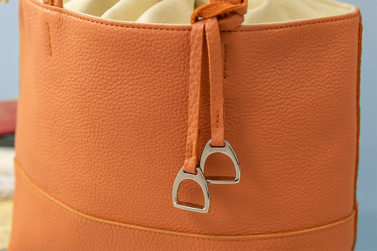 ハンドルには、過去シリーズでも好評だった鎧をモチーフにしたミニチャームを付属。馬具の意匠を取り入れたディテールが、ほどよいアクセントとして光ります。