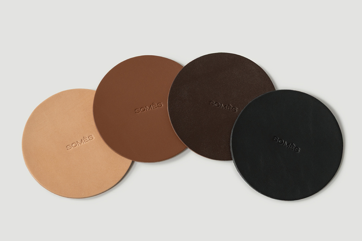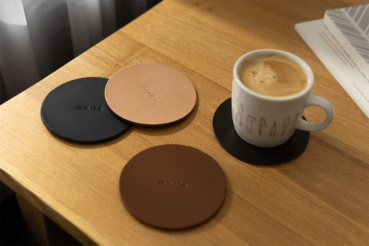 経年変化を愉しめるレザーコースターは、ナチュラル・ブラウン・ダークブラウン・ブラックの4色で展開。