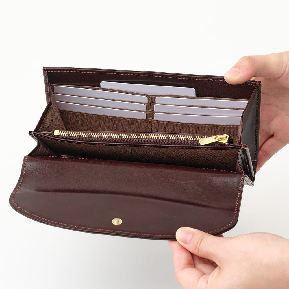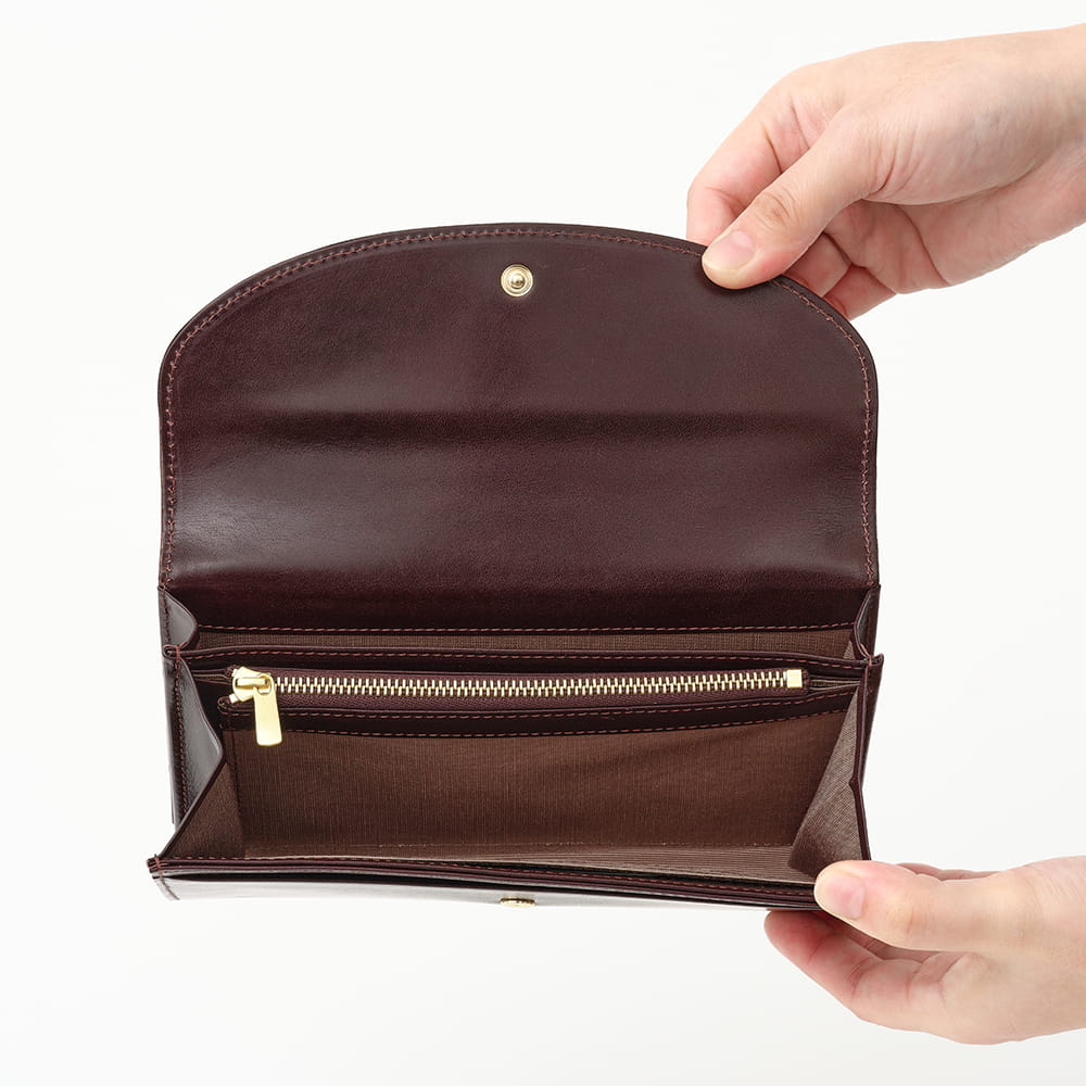 内装はウォレット機能と収納スペースに分かれた二層構造です。