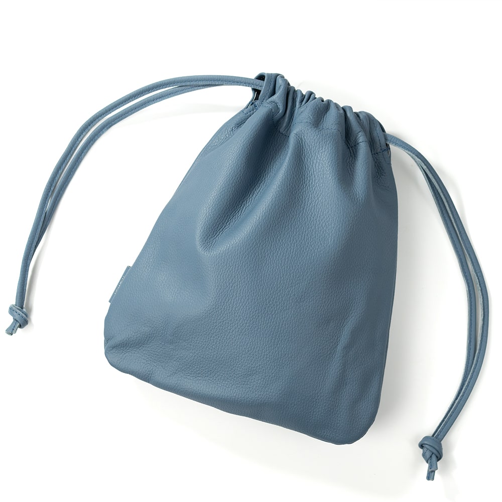 ソフトな手触りが特徴のシュリンクレザーで仕立てるキンチャク。箔押しのロゴ入りタグがワンポイントです。