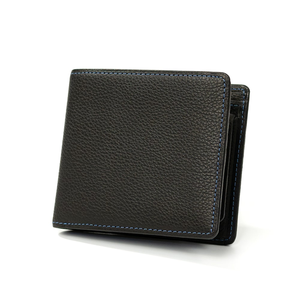 コンパクトながら収納力も保持した二つ折り財布。4つのカードポケットのほかに、3つのフリーポケットにもカードが収納できます。