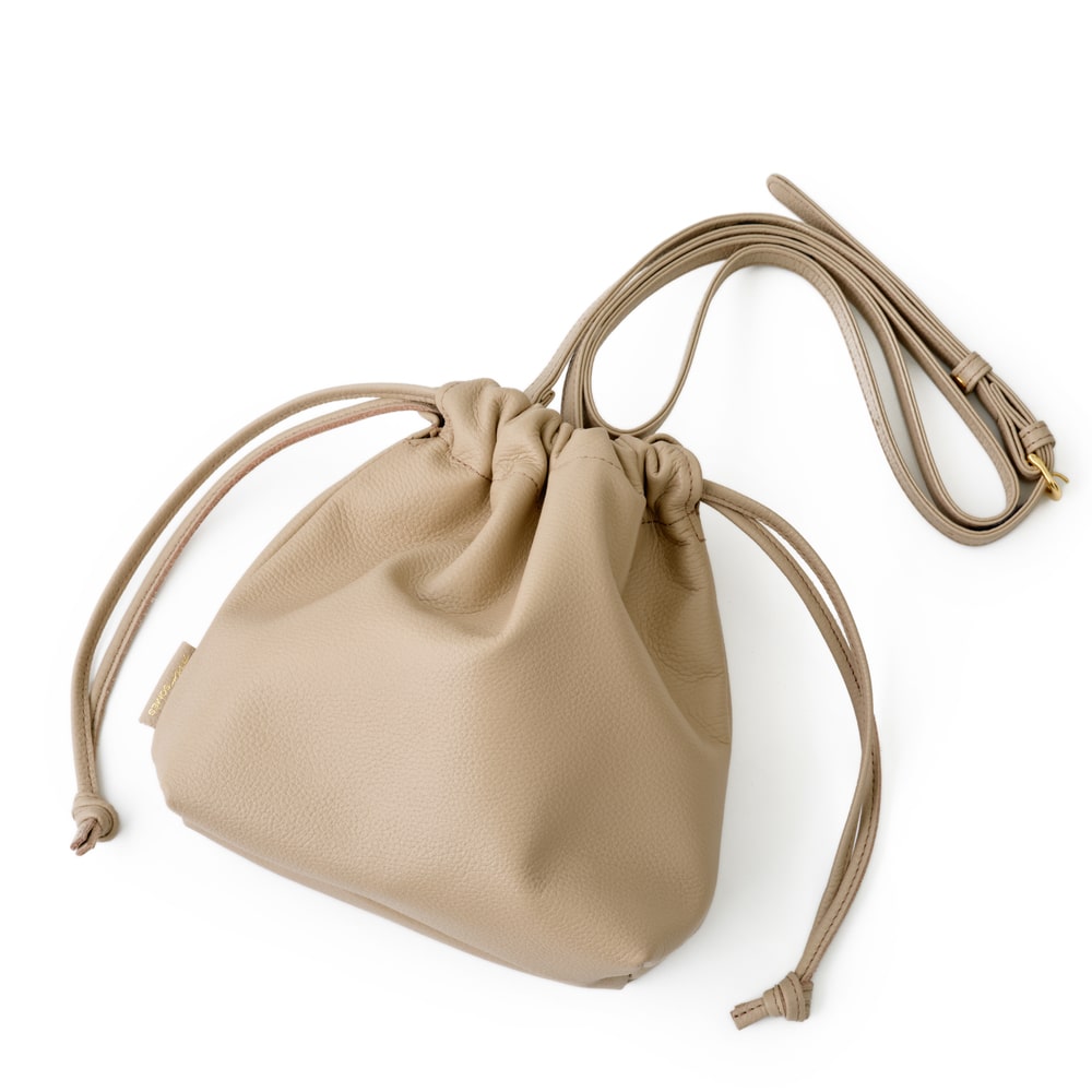 見た目にも可愛らしいコンパクトな巾着ショルダーで、手持ち使いも◎。