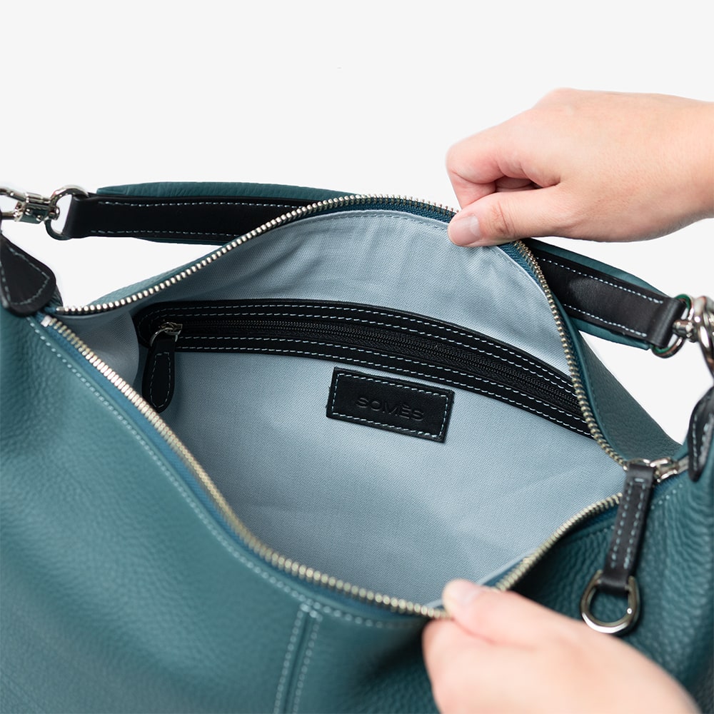 ふっくらとしたボリュームのある本体は、幅広いマチで安心の収納力。鞍の曲線美を取り入れたシルエット設計が、ソメスならではの上品さを漂わせます。