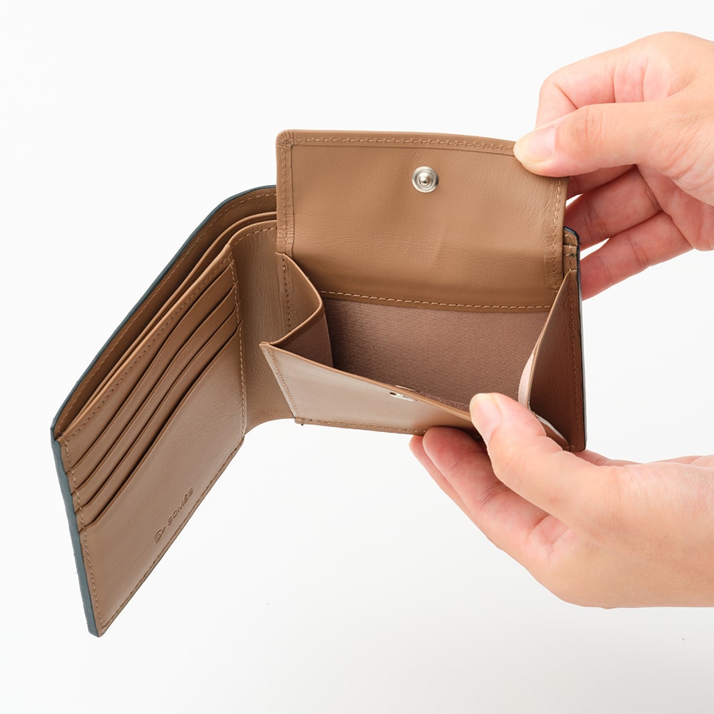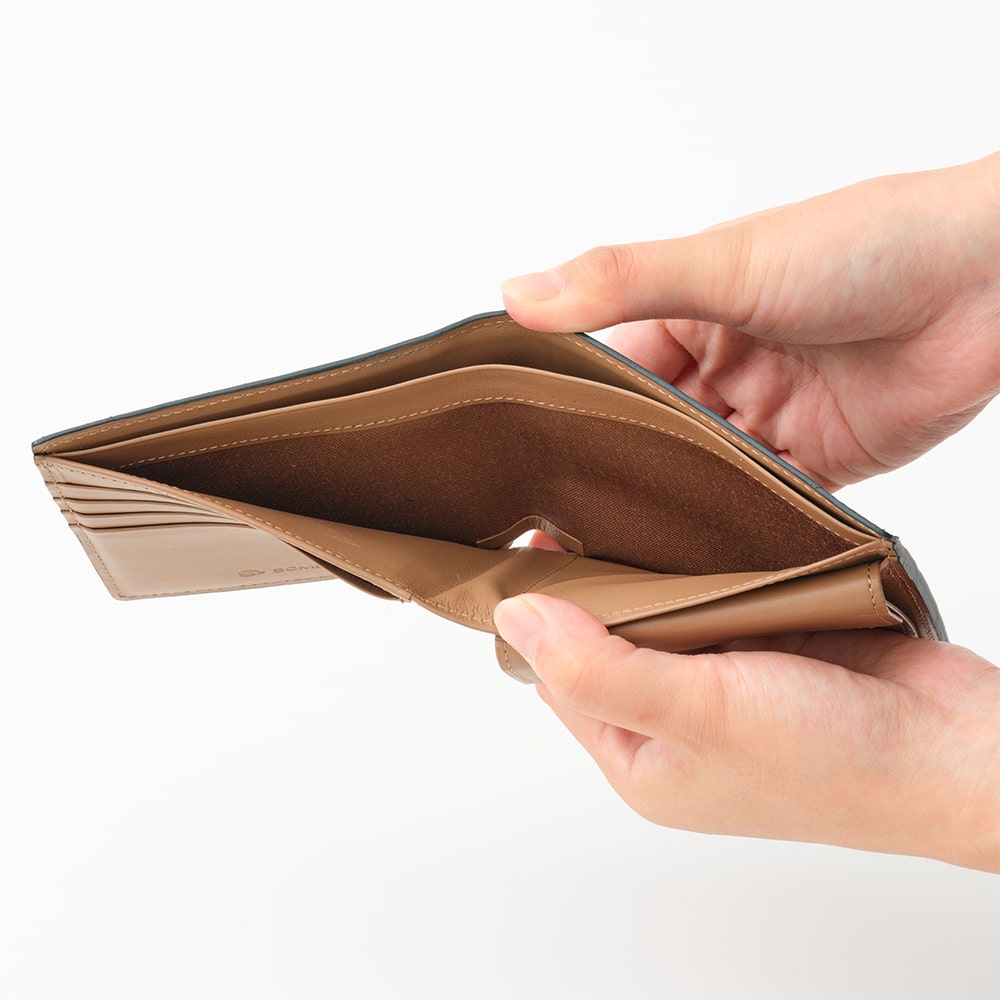 小銭入れはマチ付きで大きく開き、スムーズな出し入れが可能。