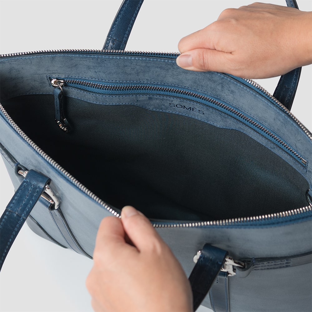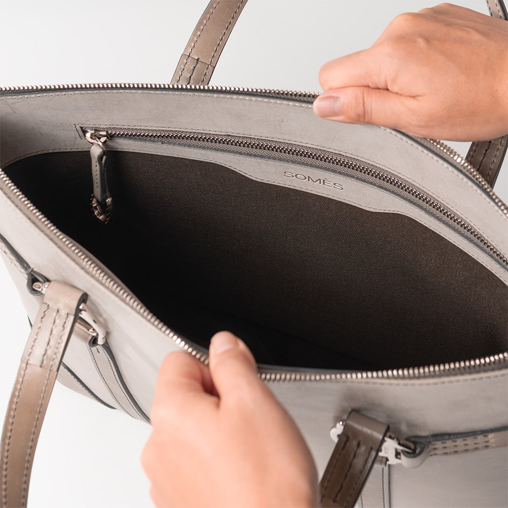内装には、レーヨンとコットンを交織した上品な生地、ファスナーにはYKK製エクセラを採用。