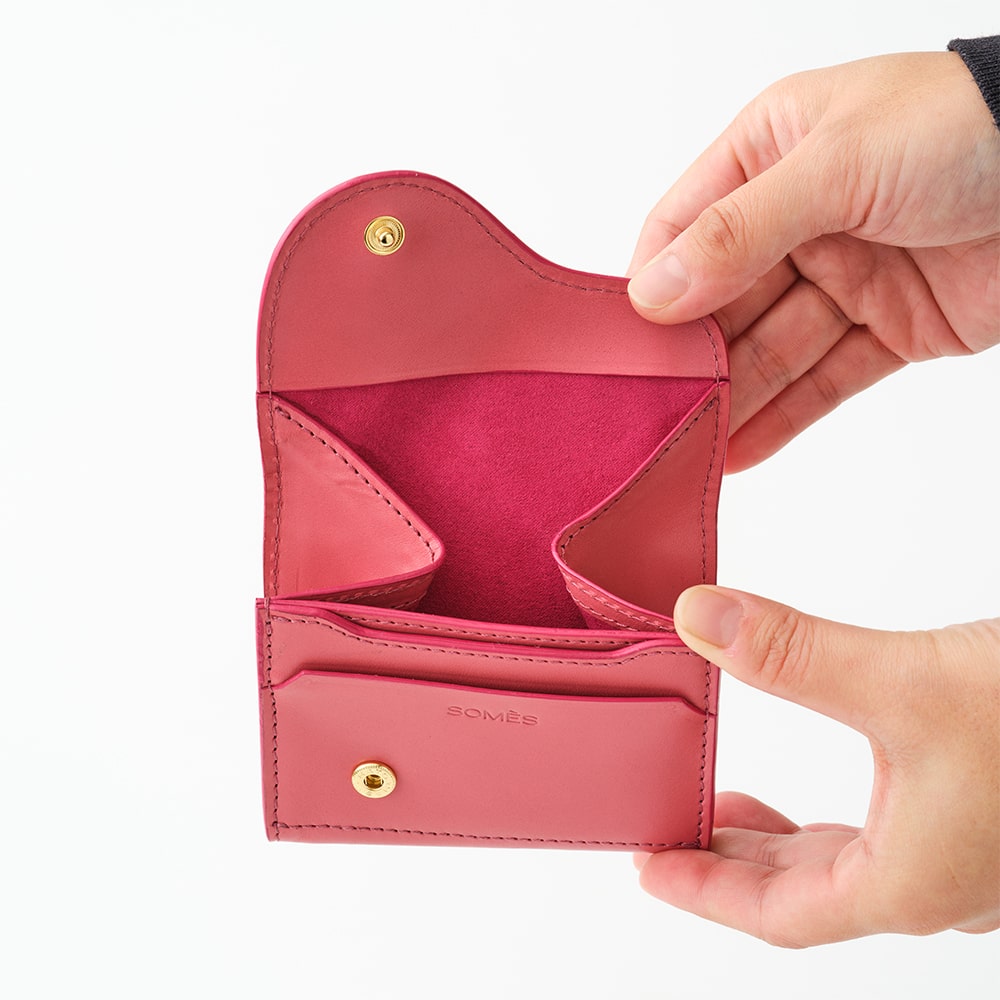 手のひらサイズながら、カード・コインをすっきりと収められる実用的なつくりです。