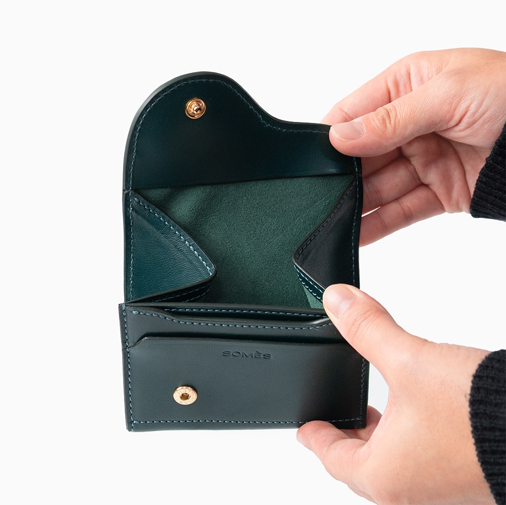 コイン入れはマチを広めに取り、大きく開いて硬貨が見渡しやすい仕様。