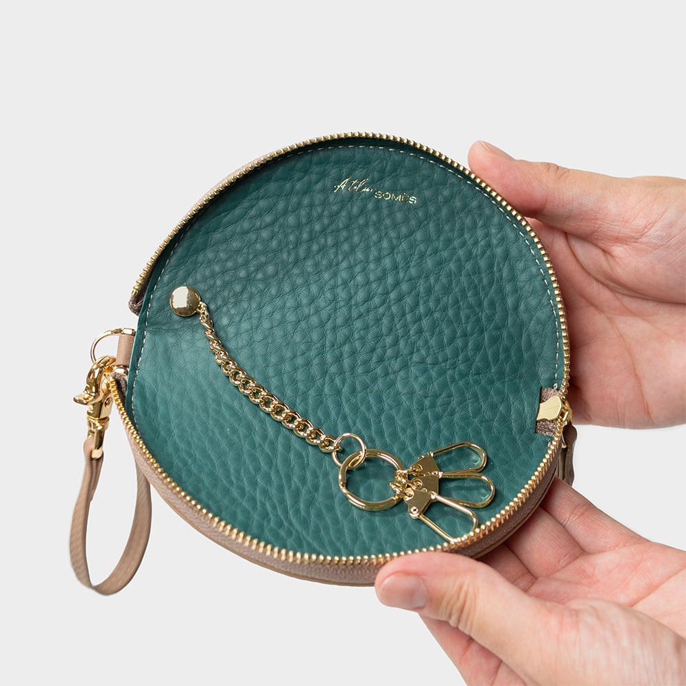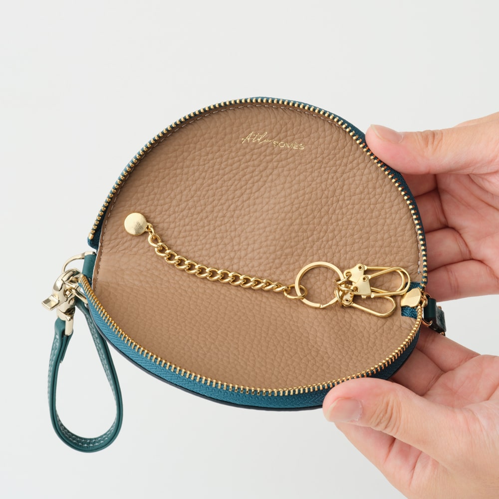 半円フォルムならではの愛らしさが際立つ「ピッコラ」のスリムキーポーチ。