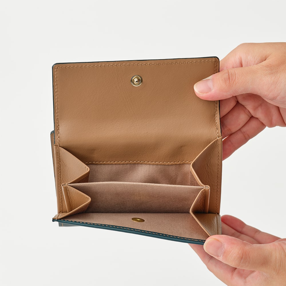 お札は折らずに収納でき、小銭入れは二層式で種類ごとに仕分けが可能です。