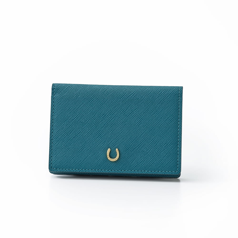 幸運のモチーフ蹄鉄を添えた「ピルエット」シリーズの名刺入れ。